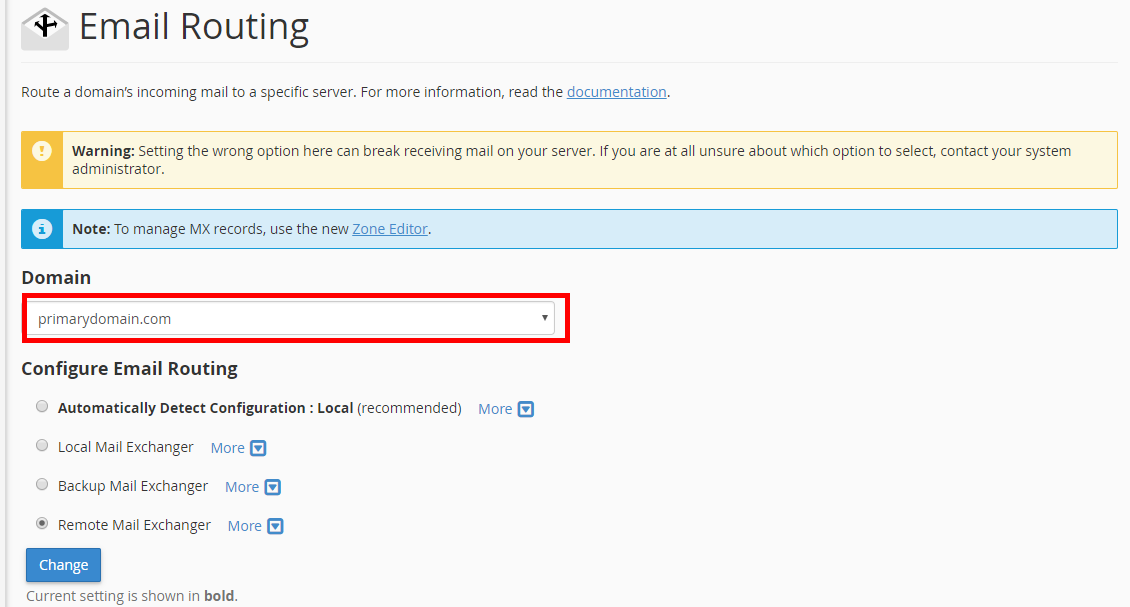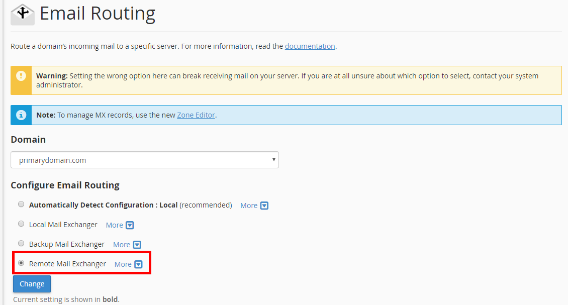 How to Set DNS Records for 3rd Party Services Updated on November 4, 2021 by Scott Mitchell 4 Minutes, 14 Seconds to Read In this article, we’ll go over how you can modify your domain’s DNS records, in order to split up your various services between multiple hosting providers. In most cases, the average website owner will have all of their web services with one hosting provider. In some cases though, you might want to split up your services so that you have one provider actually host your website and a completely separate provider to host your email. In order to follow any of the steps below, you’ll need to have your domain name pointed at our name servers, so that any DNS changes you make in cPanel on our server is what your domain actually uses. Website Hosted by 3rd Party With Email at InMotionWebsite Hosted by InMotion With Email at 3rd party Don’t have time to read our full article? Watch our walk-through video. Website Hosted by 3rd Party With Email Hosted by InMotion A common example of this is if you’re using a website hosting company that has a proprietary website builder but doesn’t host email. So if you looked for a new web host and found InMotion Hosting, your plan might be to slowly transition your website over to non-proprietary website software with us, and in the meantime also have us host your email. In the steps below, we’ll walk through using an example domain PrimaryDomain.com. Where we would like to continue to have the e-mail hosted by InMotion Hosting, but we want to point our DNS A (Address) record to another website host where you might already have your site built. Login to your cPanel.Under the Domains section, click on Zone EditorLocate the domain you’d like to modify in the list and click on the Manage option.In this example, the DNS records are already set up pointing to InMotion’s servers for all of the services. The only thing we need to modify is our A (Address) record of the website. Click on Edit beside the primarydomain.com entry.Fill in the IP address of your remote website host in the Record field, then click on Save Record. Anytime you make DNS changes, it can take between 24-48 hours for those DNS settings to fully propagate across the web. Your website will not start immediately pulling from this new IP address, and it will take a different amount of time depending on several factors. You should now see the new A record you updated. Now click on Edit beside the CNAME record for mail.primarydomain.com.Change the Type from CNAME to A and enter the InMotion server’s IP address in the Record field. You can always find your IP address in cPanel. Once done, click Save Record.Next, locate the MX record for the domain and click on the Edit link.Now, edit the record change the Record field by changing it from primarydomain.com to mail.primarydomain.com. Click Save Record to save the changes. Website Hosted by InMotion With Email Hosted by 3rd Party A common example of this is if you’d like to host your website with InMotion Hosting, but you have email services with another provider such as Google Apps for your domain. In the steps below, we’ll walk through using an example domain PrimaryDomain.com. Where we would like to continue to have the website hosted by InMotion Hosting, but we want to point our DNS MX (Mail Exchange) record to another email host. Login to your cPanel.Under the Domains section, click on Zone Editor.Locate the domain you’d like to modify in the list and click on the Manage option.Next, locate the MX record for the domain and click on the Delete link.A confirmation popup will appear. Click Continue. At the top of the screen, click on Add Record and then click the Add MX Record option.In the Add New Record section, you’ll want to set the Priority and Destination for your 3rd party mail service, then click on Save Record. You may need to create more than one MX record for your email service. If you use Google, for example, would need to create five records with the following information: Priority Destination 1 ASPMX.L.GOOGLE.COM 5 ALT1.ASPMX.L.GOOGLE.COM 5 ALT2.ASPMX.L.GOOGLE.COM 10 ASPMX2.GOOGLEMAIL.COM 10 ASPMX3.GOOGLEMAIL.COM Once saved, the MX Records will appear in the records list.Return to your main cPanel screen, locate the Email category, and click on the Email Routing icon.Select your domain from the dropdown list.Click on the Remote Mail Exchanger option.Click the Change button. Anytime you make DNS changes, it can take between 24-48 hours for those DNS settings to fully propagate. So your email will not start immediately delivering to these new remote MX servers. You should now understand how to split up your domain’s various services by using DNS records. While this typically isn’t needed for the average user, it might be good to know that you do have this option available to you. Share this Article Related Articles How to Configure cPanel in WHM Resetting the cPanel Password in WHM How to Import Email Accounts and Forwarders into cPanel How to Install WHMCS With Softaculous What is your default PHP.ini file? How to Create / Delete an FTP Account in cPanel How to Park a Domain in cPanel How to Permanently Delete Trash in File Manager The Complete Guide to cPanel Backups How to Delete a cPanel in WHM