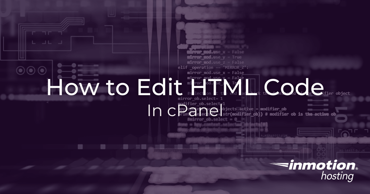 How to Edit HTML Code in cPanel Updated on December 31, 2025 by InMotion Hosting Contributor 2 Minutes, 54 Seconds to Read It’s inevitable that you will have to edit HTML code for your website. Maybe you need to update the path for an image or change the paragraph text on your website, for example. If you have minor changes to make that can be done quickly, you can use the HTML Editor in the cPanel File Manager to change the code. This is called “Editing on the fly“, which is changing the files of the source website while it’s live. Let’s go to the File Manager and see how this cPanel code editor works. Important! Editing the code in a file on the server can break your website if you do not know what you are doing. Because the file is being used by the live website, we always recommend editing a backup copy of the file instead of the files on the server. Make a backup copy of the file before editing it by right-clicking the file, selecting the Copy option, then entering a new file location. You can also edit a file using FTP, or create a clone of your site for testing using Softaculous. Edit HTML Code in cPanel Login to your cPanel. Go to the File Manager in the Files section. Navigate to the HTML page you want to edit. Right-click the file and choose the HTML Edit option. You can also select the file and click the HTML Editor link on top. Now you should see the HTML Editor interface. You can make changes to the page using the visual editor and top toolbar. You can also click the Source button to add code or change code in your file. If you see a pop-up message, read the warning then click the Edit button. When you are done making the changes, you can click Save on the top left. HTML Editor Features Now that you know how to use the HTML editor in the cPanel File Manager, we will go over the features that are included. ToolDescriptionText EditorThis is the actual place where the editing occurs. This is the main view of the HTML Editor. Paste ToolsThese tools can be used to insert or paste it into the cPanel code editor. This can save you time when you are copying text from another location or moving text around the page.Find & Replace ToolsThese buttons can be used for locating specific lines of code or text and replacing them with different text. This is handy for making multiple changes to the same code.Element ButtonsText/Styling ToolsThe text and styling tools are used for customizing text. For example, you can choose a “Header 1” option to insert a header on the page. Then change the font and size of the paragraph content contained on the page.Link/Anchor ButtonsYou can use the link button for easily creating hyperlinks to other pages or sites. The Anchor buttons can be used to link to a specific section of a page.Media/Special Character ButtonsThese buttons can help you add components to your web page. For example, you can easily insert images, embed media, add tables, and special characters. Also, keep in mind that you can click the Source button at any time to edit the code directly, without using the toolbar. Now you know how to edit HTML code in cPanel! You can begin making changes to your website on the fly. Check out our cPanel Education Channel for more helpful tutorials. Reliable Shared Hosting for Growing Businesses Get the performance your business website demands with NVMe SSD storage, industry-standard cPanel management, and direct access to hosting experts whenever you need assistance. Free Website Migration 24/7 Human Support 100% Money-Back Guarantee Shared Hosting Share this Article IC InMotion Hosting Contributor Content Writer InMotion Hosting contributors are highly knowledgeable individuals who create relevant content on new trends and troubleshooting techniques to help you achieve your online goals! More Articles by InMotion Hosting Related Articles How to Edit HTML Code in cPanel How to Configure cPanel in WHM Resetting the cPanel Password in WHM How to Import Email Accounts and Forwarders into cPanel How to Install WHMCS With Softaculous What is your default PHP.ini file? How to Create / Delete an FTP Account in cPanel How to Park a Domain in cPanel How to Permanently Delete Trash in File Manager The Complete Guide to cPanel Backups