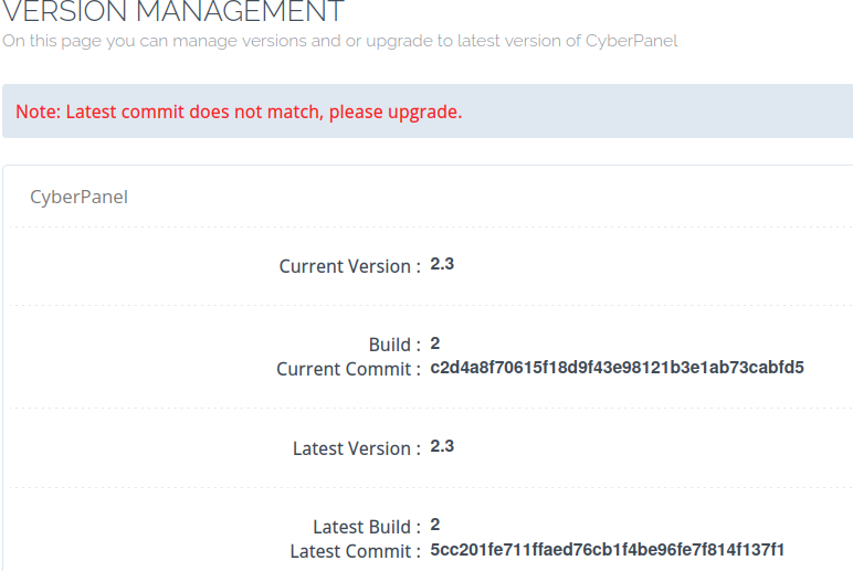 How to Update CyberPanel Server Updated on July 22, 2022 by InMotion Hosting Contributor 2 Minutes, 28 Seconds to Read CyberPanel receives upgrades monthly – new features, bug fixes, etc. The official changelog is currently easiest to view from GitHub. There are many recommendations for how to update CyberPanel. Some forums recommend rerunning the installation script or running various commands. We spent time testing different options so we can share the best method with you. You’ll need root access. And you should create a server snapshot beforehand just to be safe. Upgrade CyberPanelUpdate CyberPanel Server PackagesUpdate AlmaLinux and Enterprise-based Linux PackagesUpdate Debian / Ubuntu Packages Upgrade CyberPanel This section covers how to check if there are updates available for your Linux control panel. Log into CyberPanel.On the left, select Version Management.Check for the following error at the top: “Note: Latest commit does not match, please upgrade.” You’ll also see that the current version and latest version do not match.If the error is present, log into SSH as root.Run the CyberPanel utility command: cyberpanel_utilityType 1, then Enter to upgrade CyberPanel.After you see “CyberPanel Upgraded,” log back into CyberPanel.Go back to Version Management.Ensure that the “please upgrade” warning is gone. The “cyberpanel upgrade” command didn’t work during our testing with version 2.3. Update CyberPanel Server Packages This section covers how to update other software on your Linux server from the dashboard. Log into CyberPanel.On the left, select Server Status > Package Manager.Select the lock icon for any package you don’t wish to update.Select Details under “Actions” to see more details about the package.Select Update under “Actions” to update an individual package.Once the bottom of the progress window reads “upgraded successfully,” close it.Select Update All to upgrade packages on the CyberPanel server, excluding locked packages.Once the progress window reads “Package(s) upgraded successfully. [200],” close it.Refresh (F5) the page to see if there are any packages left to update.Repeat steps 3 through 9 if necessary. Update AlmaLinux and Enterprise-based Linux Packages Depending on your workflow, you may prefer to manage system repositories from the command-line interface (CLI). To update system packages from the terminal with YUM: Update the repository: sudo yum -y updateView available updates: sudo yum check-updateRun updates: sudo yum update Update Debian / Ubuntu Packages To update system packages from the terminal with apt: Check for updates available: sudo apt updateSee what updates are available: sudo apt list --upgradableUpdate system packages: sudo apt upgrade Once you’ve finished updating your CyberPanel server, don’t forget about your web applications and integrations. Check your password manager and change any passwords you’ve had over four months. Enable two-factor authentication (TFA/2FA) for every account possible. Let us know below if you have any questions regarding the Linux control panel. Alternatively, you can ask questions in our community forum. Or, if you need immediate assistance with a highly technical task, contact our Managed Hosting specialists. In the meantime, learn more from our Support Center about how to manage your CyberPanel VPS. With our Cloud Server Hosting, you can deploy a lightning-fast, reliable cloud platform with built-in redundancy – ensuring the availability of your environment! Share this Article InMotion Hosting Contributor Content Writer InMotion Hosting contributors are highly knowledgeable individuals who create relevant content on new trends and troubleshooting techniques to help you achieve your online goals! More Articles by InMotion Hosting Related Articles What is CyberPanel Hosting? Change PHP Versions in CyberPanel How to Create a BIMI Record in CyberPanel How to Setup CyberPanel Email Server How to Create CyberPanel Backups CyberPanel DNS Server Configuration CyberPanel Security Vulnerabilities Introduction to CyberPanel 3 Easiest CyberPanel Demo Methods How to Install CyberPanel