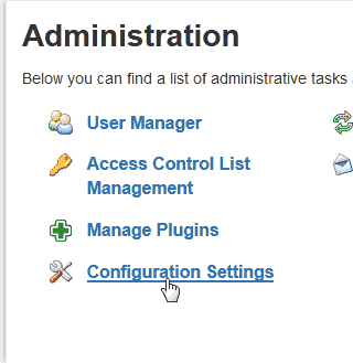 Select the Configuration Settings link in the Administration.