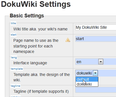 4. To change template dokuwiki select default