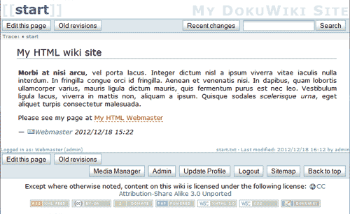 5. Log into DokuWiki as admin.
