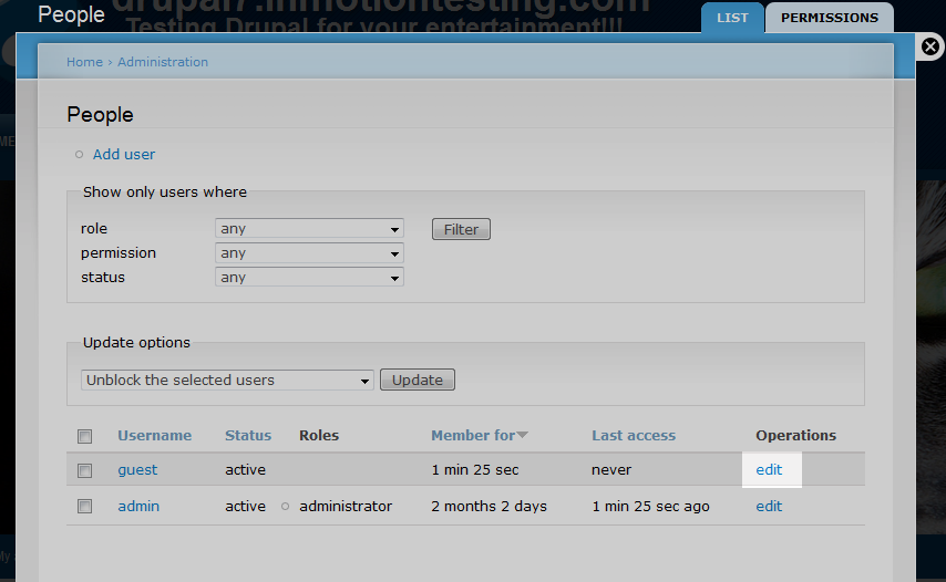 How to block a user account in Drupal 7 Updated on August 16, 2021 by Scott Mitchell 1 Minutes, 3 Seconds to Read There may come a time when you need to block an account from having access to your site. In an ideal world, we would neer have to discipline site members, but it does happen. Also, you may want to disable accounts for anyone on vacation to further secure the account and site. Whatever your reason, blocking a user account in Drupal 7 is very easy to do. To learn how, simply follow these steps: Log into your Drupal 7 admin dashboard. From the top menu bar, locate the People option and click it. From the People screen, find the user you want to block and click the Edit link for that user. This new page is where you find all the individual settings for your chosen user. Find the Status area and click the radio button named Blocked. This sets the user to an inactive status, and therefore unable to log in once the settings are saved. Once selected, scroll to the bottom of the page and select the Save button. This takes you back to the user list where you will see that your chosen user now has a Status of Blocked. To reactivate the user, simply follow the same steps, selecting Active as the status on the user’s settings page. Share this Article Related Articles Finding 404 page not found errors in Drupal 7 Removing the site title in Drupal 8 Content Types in Drupal 8 Disabling user images for posts and comments in Drupal 8 How to add an image in Drupal 7 How to upload your custom logo in your Drupal 7 theme Setting custom logos in your Drupal 8 theme Fixing the “An unrecoverable error occurred” error in Drupal How to Make a Duplicate Drupal Site How to Install a New Theme in Drupal