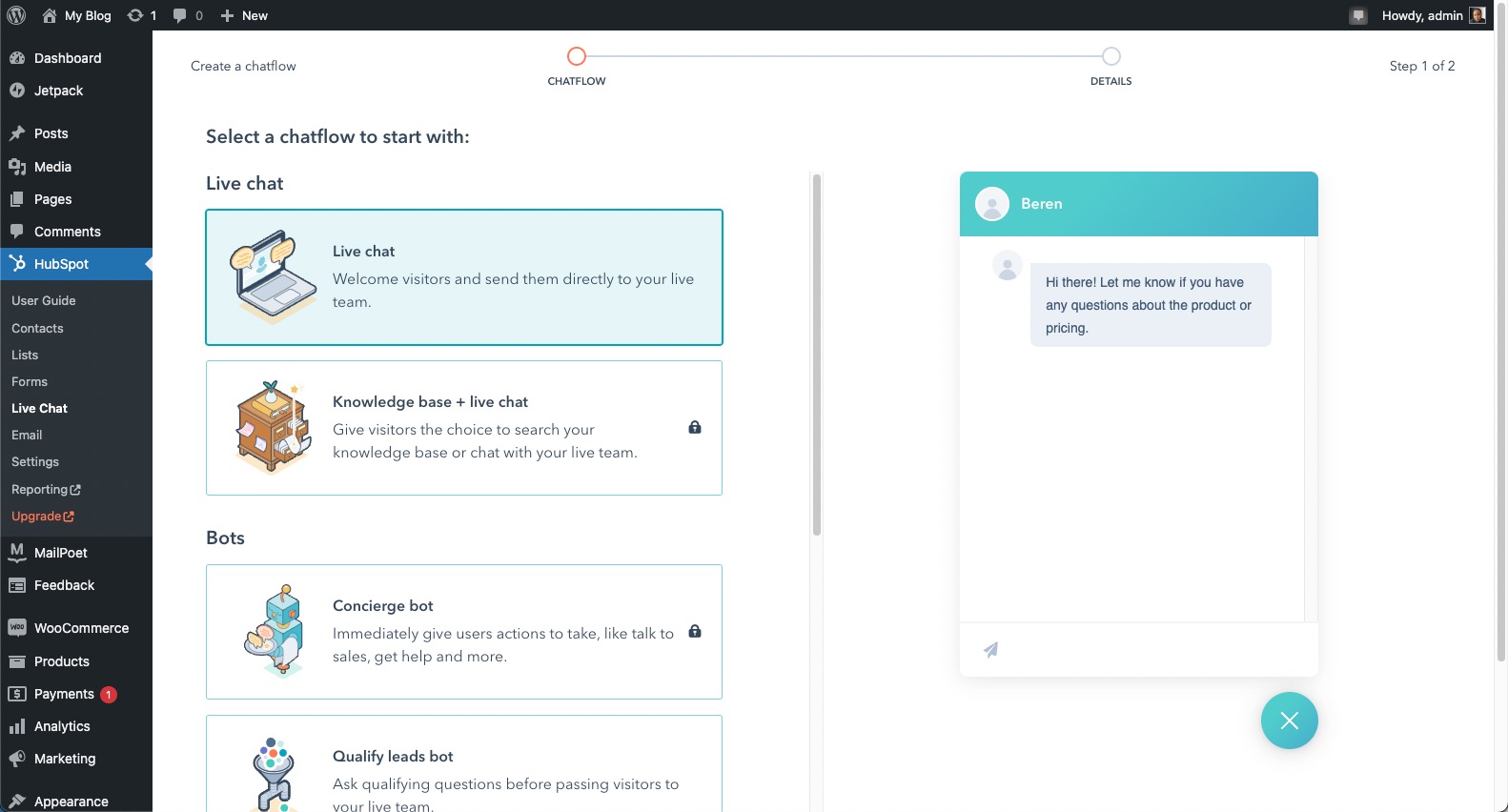 How to Set Up a Live Chat in HubSpot Updated on December 20, 2022 by InMotion Hosting Contributor 3 Minutes, 51 Seconds to Read One of the great features of HubSpot is the ability to use chat. The availability of chats gives your customers immediate access to ask questions, get answers, or provide feedback. The chat option benefits your company and your customers by giving them another way to communicate. This tutorial will walk you through setting up a chatflow within HubSpot. Starting the Set Up of a Chatflow The Four stages of Creating a Chatflow Build Stage – Welcome Message, Knowledge Base Search, Chat Ownership, and Email Capture Target Stage – Select the Website Pages for Live Chat and Specify Visitors For Access Display Stage – Determine How Live Chat Appears Options – Language, Data Privacy, and Feedback Completing the Chatflow Starting the Set Up of a Chatflow in HubSpot CRM HubSpot defines channels for chats as chatflows. A chatflow allows you to assign and organize chats by categories and your HubSpot team members. You will start the creation of a chatflow by selecting Live Chat or Bots. This tutorial uses Live Chat.You must be logged into your WordPress Administrator Dashboard to follow the steps below. Click on HubSpot. Click on Live Chat. In the top right corner of the screen, click on Create chatflow Select a chatflow to start. For this tutorial, select Live Chat. Click Next in the bottom right corner. Select where your chats will arrive. The free version defaults to Inbox in the HubSpot account. You can also change the supported language. Click on Create in the bottom right corner of the screen. The Four stages of Creating a Chatflow Chatflows are created in four stages: Build, Target, Display, and Options. Each section is detailed below. Build Stage – Welcome Message, Knowledge Base Search, Chat Ownership, and Email Capture The Build stage starts with the Welcome Message. Click on the arrow to expand the Welcome section. Type a welcome message in the text box. Knowledge Base search – enable the option to search the company knowledge base. This option requires an account upgrade. Automatically assign conversations – automatically assign new conversations to the HubSpot team members. This option requires an account upgrade. The next option is for Email Capture. You can ask a visitor for their email address using one of the first two settings in the drop-down menu. Select the third option to not ask for the address. Create an Email capture message. An example of a message might be:Leave your email, and we’ll respond as soon as possible. Target Stage – Select the Website Pages for Live Chat and Specify Visitors For Access Click on Target. Select the pages where the chat widget will appear. Visitor information and behavior (optional) – You can determine who can access your chats or even set up an exclusion rule to keep people out. Display Stage – Determine How Live Chat Appears Click on Display. Here you can choose a custom image or logo for your chat avatar. Set the chat display behavior for a desktop system. Your options include:– Pop open the welcome message as a prompt– Only show the chat launcher– Show the welcome message, then pop open the chat widget when triggered. Click on the Mobile tab to set the Chat display behavior for a mobile device:-Pop open the welcome message as a prompt-Only show the chat launcher Click on the Desktop tab again. Determine when the chatflow appears to visitors:– On exit intent– Time on the page in seconds = (seconds)– Percentage of the page scrolled = (50%) Options – Language, Data Privacy, and Feedback Select the Options for your chatflow. Language – defaults to English. Determine the options for Data privacy & consent (use the slider to enable/disable):– Consent to collect chat cookies– Consent to process data– Consent to communicate Collect feedback from chat visitors – Ask visitors to complete a survey and provide feedback. This option requires an updated HubSpot account. Completing the Chatflow After completing the options stage, finish creating the chat flow In the top right corner: Click on Preview to see your chat. Click on the slider to save your chatflow settings. Click on Back to Chatflows (in the top left corner) to return to the Chatflows page. The live Chat option in HubSpot is a powerful tool for your WordPress site. It helps provide better communication with your customers so that you can resolve possible problems. Live chat also gives your customers or potential customers another way to contact you or your team, giving you another advantage over competitors who may not have this option. Share this Article InMotion Hosting Contributor Content Writer InMotion Hosting contributors are highly knowledgeable individuals who create relevant content on new trends and troubleshooting techniques to help you achieve your online goals! More Articles by InMotion Hosting Related Articles How to Create Deals Using HubSpot How to Create Lists in HubSpot How to Create an Embedded or Standalone Form Using HubSpot How to Manage a List in HubSpot How to Add Contacts in HubSpot How to Set Up a Live Chat in HubSpot How to Create and Edit Tickets in HubSpot How to Create a New Marketing Email in HubSpot How to Create Pop-up or Moving Forms with HubSpot CRM Installing and Connecting HubSpot for WordPress