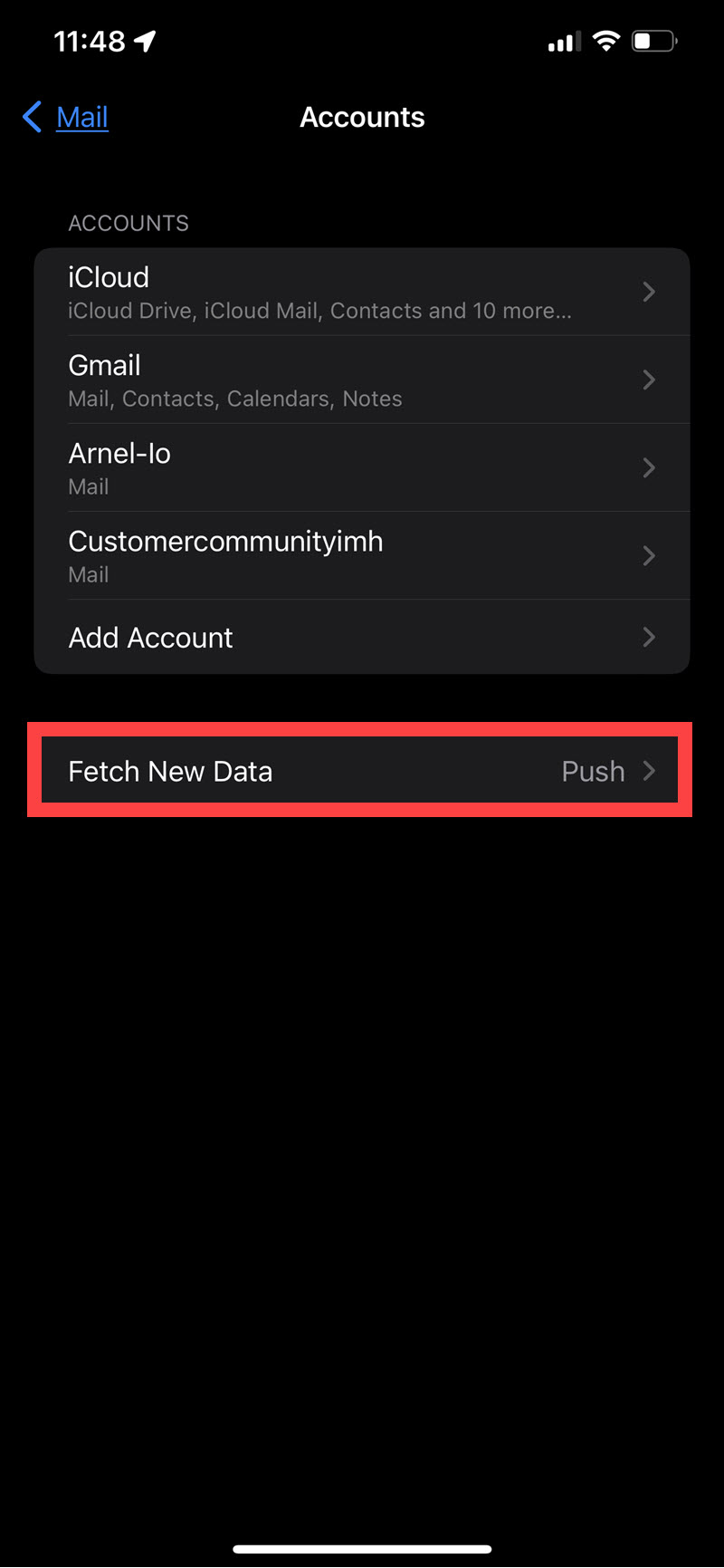 Hi Steve – The main difference I’m seeing is that when I look for “Accounts and passwords” it’s reversed and labeled “Passwords & Accounts”. Then I scan down to Fetch New Data, the very first thing that I see is “Push” and it’s a toggle switch at the top of the screen when I tap on it.