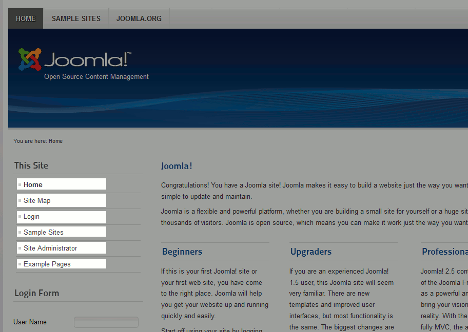 An Introduction to Joomla 2.5 Menus Updated on September 22, 2020 by Brad Markle 0 Minutes, 56 Seconds to Read Joomla 2.5 has reached its end of life as for 12/31/2014. Please be advised this may be a security risk to your website. You can view more information about the end of life here. Menus With your Joomla hosting, menus provide the basic site navigation for your website. They allow you to link visitors to other parts of your website. What website visitors see What is displayed in the Joomla Dashboard Menu Items Each Menu contains one or more menu items. Menu items are the actual navigational links that users click on. When setting up menu items, there are quite a few options you have to choose from. The most popular menu items are links that point to either specific articles or to a listing of all articles in a category. What website visitors see What is displayed in the Joomla Dashboard Menu Modules Creating a menu does not automatically add the menu anywhere to your site. When you create a new Joomla 2.5 menu, a module for that menu is created. You then need to enable the menu’s module and select the position in the template where the menu should go. Share this Article Related Articles How to Use the Free Mini Frontpage Extension for Joomla 4.0 How to Change a Joomla 2.5 User’s Email Address How to Configure Joomla 2.5 to Send Email Using SMTP How to Edit a Joomla 3 Template How to install Phoca Gallery for Joomla 2.5 Creating a Menu Item for your Joomla 3 Component Changing Email Settings in Joomla 3.1 Using the Redirect Manager in Joomla 3.1 How to add Bootstrap to a Joomla 3.1 Template How to Use Bootstrap 5.0 Alerts in Joomla 4.0