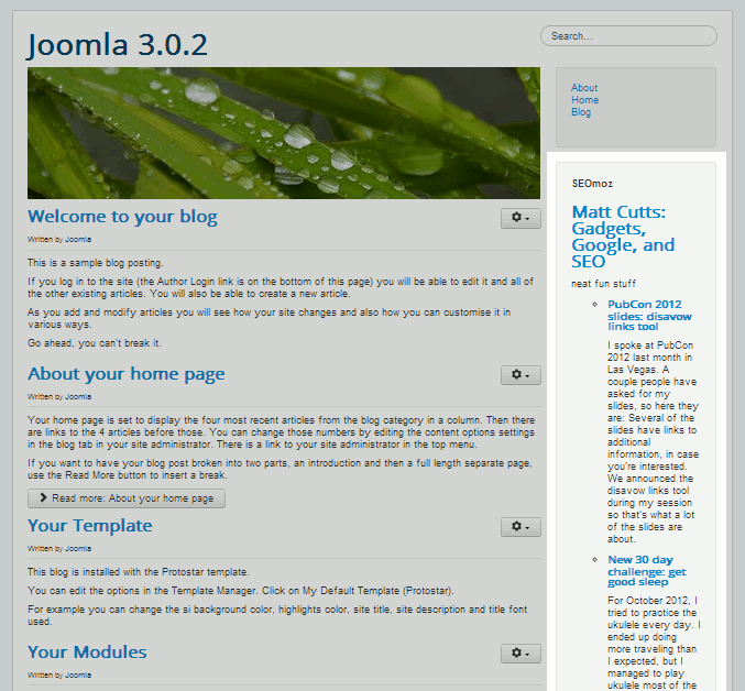 After clicking save, the RSS feed module (Newsfeed) you just created will show in the position and pages you specified. You can see in the screenshot that we setup the Matt Cutts RSS feed to show in our right sidebar.