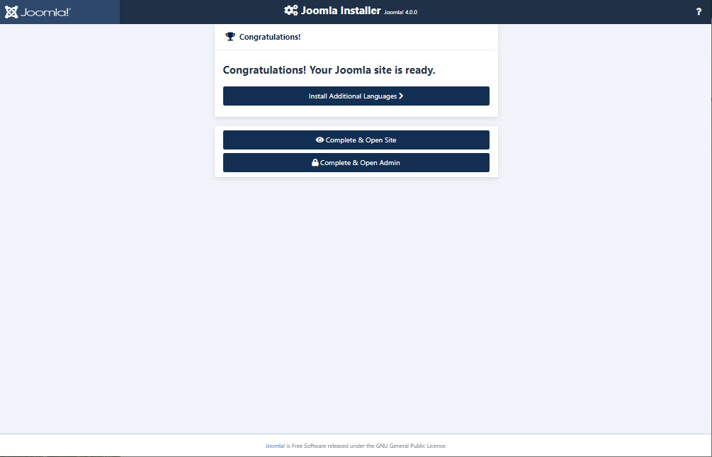 Manually Install Joomla 4.0 Updated on November 3, 2023 by InMotion Hosting Contributor 7 Minutes, 10 Seconds to Read After 9 years of diligent work, Joomla developers have reached the major milestone of Joomla version 4.0. This article will walk you through how to manually install Joomla 4.0 in two major steps – the database setup and the webserver installation. Note that these instructions will be using a cPanel-based web server installation using the default MySQL server that is part of the hosting service. Setting up the Database Setting up the Webserver Enjoy high-performance, lightning-fast servers with increased security and maximum up-time with our Secure VPS Hosting! Linux VPS cPanel or Control Web Panel Scalable Website Migration Assistance Linux VPS Hosting Setting up the Database Before you can manually install Joomla! 4.0 you will need to create and configure a database user with MySQL. These instructions will be shown using the cPanel interface. You will need to have access to cPanel in order to follow the steps. Login to the cPanel. Scroll to the Database section of cPanel. Click on the icon labeled MySQL Databases. Starting at the top of the MySQL Databases page you will be creating a blank database. By default, InMotion Hosting accounts prefix every database created with the account user name. So, if the username is userna5_ then the database name would be userna5_databasename. You would replace “databasename” with your preferred username.Type in a name for your database, then click on the blue button labeled Create Database. Next, you will need to create a user for the database. Like the database name, the user name will be prefixed by the account user name. Scroll down to the next section (under Modify Databases) and then type in a name for the user of your Joomla! 4 database. You will then need to type in a password and confirm it. You can click on the Password Generator at the bottom to create a strong password if needed. Your password should be strong and you will need to record it so you don’t forget it. This user is what Joomla uses to communicate with the database server so please make sure to use a strong password and record it securely. Once you’re done with the password, click on the blue button labeled Create User. After you have added the new user you will still need to add the user to the newly created database. This is done in the next section labeled Add User to Database.Click on the drop-down arrow to select your newly created user and then click on the drop-down arrow for database and select your newly created database. Click on the blue button labeled Add. You will then see a table of User Privileges that can be assigned to the database. As this is the main user used to control the database for Joomla!, you will need to make sure that the user has ALL of the privileges. There is an option to select All at the top of the table.Click on the box labeled ALL PRIVILEGES at the top of the table. Make sure everything is checked and then click on the blue button labeled Make Changes. You will see a green notification pop-up confirming that you have added to the user with the privileges for that database. Click on the Go Back link at the bottom. Make sure you record the database name, database user name, and password. You will need them in the next part of the installation. This completes the database creation that you will need to manually install Joomla 4.0. Setting up the Web Server The web server side of the installation is the actual “meat” of the Joomla! 4.0 setup. You will need to first download the Joomla! installation file from their website. The file comes in 3 formats: zip, tar.gz, and tar.bz2. You can see the different file versions on the Joomla! 4 Downloads page. If you’re an IMH customer, then either the zip or tar.gz formats will work. If you’re not sure, then contact the technical support team for your hosting provider. You will also need to either have a domain name ready for the installation or set up a subdomain or addon domain in cPanel in order to properly access the Joomla! site once it has been installed. For more specific information on the different domain types in cPanel, see New Domains: Addon, Parked, and Subdomains.You can also easily use an existing domain name and install Joomla! to a subfolder. However, you should only do this if you are experimenting/testing with Joomla! or if it’s not important that the Joomla! install have a unique URL. The URL for an installation using an existing domain name and a folder name would look like this: https://domain_name/folder-name/. This tutorial uses a domain name and a folder for the installation steps below. You will need a properly registered domain or subdomain name in order to access the Joomla! site on the internet. Login to cPanel (if you’re not already logged in). In the cPanel go to the Files section and click on File Manager. If you’re using a unique domain name, then you should go to the root directory for that domain name or sub-domain name. If you’re installing to a subfolder, then it’s easy. Simply, create a new subfolder in the root directory of the domain you’re using for the installation. You can do this in File Manager. For example, click on the public_html folder (the default root directory for a primary domain on an IMH account), then at the top of the file manager, click on the option labeled +Folder (or New Folder). Give the new folder a name. Once you have your installation location identified or created, click on the Upload option at the top of File Manager. You will then upload the zip or tar.gz file that you downloaded from the Joomla! site. Once you have uploaded the file, click on it to select it. Then in the top right corner of the file manager you can click on the Extract option. You will want to extract the files into the folder you created. Once all of the files and folders have been extracted you will be ready to start the Joomla