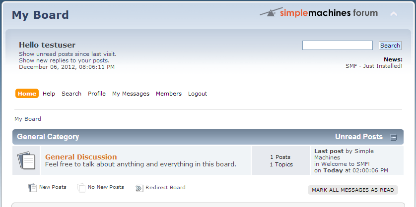 Creating a new user in SMF 2.0 Updated on January 23, 2024 by Brad Markle 0 Minutes, 53 Seconds to Read Since the vast majority of users will sign up for your site themselves, there is not a way to create a user directly in the admin dashboard. If you wish to create a new user profile, you will need to do so within the normal registration method as your site visitors. Below are instructions for doing just that. How to create a new user in SMF 2.0 Visit the front page of your SMF Site. To begin user account creation, click on the Register link from the top menu. Next is the Terms of Service for creating an account on your SMF site. Click on the button labeled I Accept The Terms Of The Agreement to continue. This page is where you will enter the user’s basic information. At the bottom is a captcha security feature to prevent robotic, or, automated user creation. Once you have completed the information form, click on the Register button to save the information. If the information is valid and successfully saved, the user account will be logged in and returned to the main screen. Share this Article Related Articles Creating a new user in SMF 2.0 Changing a user’s password in SMF 2.0 What Is a Wiki? Editing the Footer in MediaWiki How to insert images into MediaWiki Managing passwords and usernames in MediaWiki How to make basic changes to mediawiki skins How to manually install SMF How to install SMF 2.0 with Softaculous How to log into your SMF admin dashboard