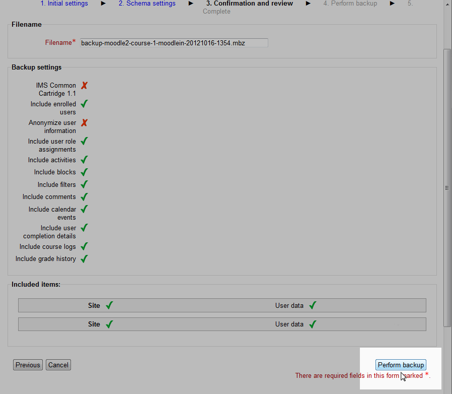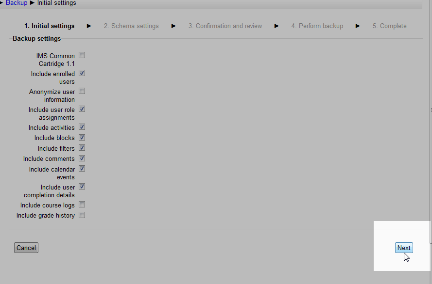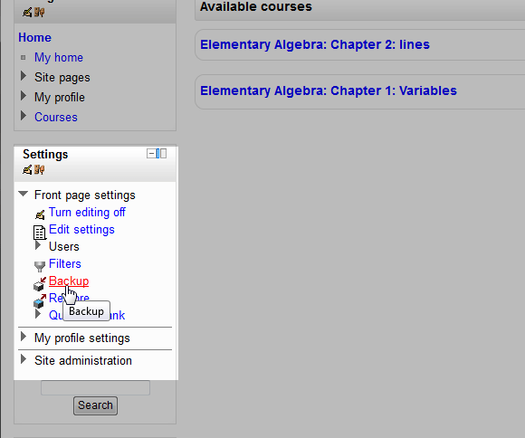 Creating a Backup of Moodle Updated on August 16, 2021 by InMotion Hosting Contributor 1 Minutes, 27 Seconds to Read Now that course settings are understood from the last tutorial What are the Moodle Course settings?, learning how to back up Moodle is the next topic. Moodle has its own back up feature where the site can be backed up through the Moodle dashboard. The following article will outline the process of backing up Moodle through the Moodle Dashboard. Create a backup of Moodle through the Moodle Dashboard Log into Moodle Click Backup in the Settings on the left. The Initial settings page should display. There should be a list of Backup Settings that can be selected for configuring the Moodle backup. Select the values that need to be backed up and click Next. The next page that displays is the Scheme Settings. This is the database information that Moodle will need for the restore. To back up the entire site, select ALL. There is the option to only backup specific database information; However, for learning purposes, All the database information will be selected in this example. Click Next. The Confirmation and review page should load. This page will display the backup settings and the database information that is being backed up. Click Perform backup. After the Perform backup runs, the page should show “The backup file was successfully created.” Click Continue. Congratulations, the backup of the Moodle site was successful and can be restored at a later date. Now that the Moodle site is backed up, the backup can be restored at a later date. Please see the following tutorial on Restoring Moodle from a backup. For more information creating courses, please visit our education channel on Creating and restoring backups in Moodle. this article is also in the Getting Started with Moodle after the tutorial on Managing the Moodle question bank Share this Article InMotion Hosting Contributor Content Writer InMotion Hosting contributors are highly knowledgeable individuals who create relevant content on new trends and troubleshooting techniques to help you achieve your online goals! More Articles by InMotion Hosting Related Articles How to install Moodle using Fantastico Installing Moodle with Softaculous How to Add Content Security Policy in Moodle With the Local CSP Plugin Inserting an image slider in Moodle Changing the Moodle admin password through PhpMyAdmin Fix “uploaded file may exceed the post_max_size directive in php.ini” How to Add the Quiz Module in Moodle Adding the File Resource Module to Moodle Courses Integrate Jitsi with Moodle Courses How to Install a Plugin in Moodle