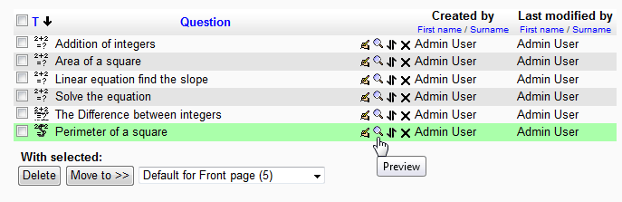 Setting up a Calculated Simple question in Moodle 2.3 Updated on August 16, 2021 by InMotion Hosting Contributor 2 Minutes, 16 Seconds to Read Creating calculated questions in Moodle 2.3 can be quicker using the Calculated Simple question type in the Moodle Question Bank. If you have not reviewed the Calculated and Calculated multichoice tutorials, please do so as they will help with this tutorial. The following article will explain the steps for setting up the Calculated Simple question within Moodle. Creating a Simple Calculated question Log into the Moodle Dashboard Navigate to Front page settings > Question bank > Questions. Click Create a new question and select Calculated Simple and click Next. On the Adding a Simple calculated question page, Fill in the General section. This is the same as step 4 of the Inserting a Calculated question in the Moodle Question Bank. In this tutorial, the question will be on the Perimeter of a square. The question will be as follows: What is the perimeter of a square with the length of {L} inches and the width of {W} inches? In the Answer section, enter the formula in the Correct Answer Formula= box. For information on the tolerance see Working with the calculated question Tolerance in Moodle 2.3 Hint! Formulas should be created the same way they are entered into a calculator. The answer formula for this question will be 2*{W}+2*{L} Note! The grade of one of the answers should have a score of 100% so it is possible to get full marks for this question. Scroll down to after the Hint section to the Find the wild cards {x…} present in the correct answer formulas button. This feature is a part of the Simple Calculated question. Moodle will generate the Parameters for the questions based off of what was inputted in the Question text of the General section. Click the button. Now the Wild cards parameters used to generate the valuesbox will appear. Here the Range of values and the Decimal places for both variables can be edited. Adjust the Range of Values for each wild card variable. Set the quantity of wild cards to generate and how many to display. The Generate button will determine how many datasets to make. The Display button will display only the amount selected in the box. In this tutorial, Generate 10 and Display 2. Click Generate. The Wild card(s) values element will appear. Only 2 will display because the display was set to 2. Click Save changes. Finally, Preview the question in the Question Bank. When answering the question, because 10 Datasets were created. This question will be randomized with 10 different numbers and answers. This concludes the article for Setting up a Calculated Simple question in Moodle 2.3. After understanding the Calculated questions, lets move to a simpler question type, the Essay question. Please check the next article on Creating an Essay question in the Moodle Question bank. Share this Article InMotion Hosting Contributor Content Writer InMotion Hosting contributors are highly knowledgeable individuals who create relevant content on new trends and troubleshooting techniques to help you achieve your online goals! More Articles by InMotion Hosting Related Articles How to install Moodle using Fantastico Installing Moodle with Softaculous How to Add Content Security Policy in Moodle With the Local CSP Plugin Inserting an image slider in Moodle Changing the Moodle admin password through PhpMyAdmin Fix “uploaded file may exceed the post_max_size directive in php.ini” How to Add the Quiz Module in Moodle Adding the File Resource Module to Moodle Courses Integrate Jitsi with Moodle Courses How to Install a Plugin in Moodle