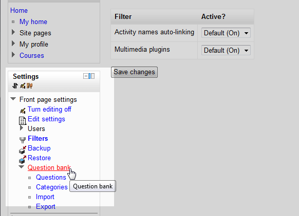 Managing the Moodle question bank Updated on August 16, 2021 by InMotion Hosting Contributor 2 Minutes, 11 Seconds to Read The Moodle Question bank is a feature in Moodle 2.3 that allows the administrator to add new questions, edit existing questions, and import / export questions. The previous article explained How to edit the Front page settings in Moodle. This tutorial will briefly explain the Question Bank and what it is used for. Moodle question bank overview Log into the Moodle Dashboard In the Settings section on the left, navigate to the Front page settings > Question bank > Questions. Important! Keep in mind that Editing must be turned on in the Settings section in order to edit any of these options. In the Question Bank section of the Front page settings, click Questions. Click the Create a new question button and the Choose a question type to add dialogue box will appear. The purpose of adding questions to the Question bank is to allow the teacher or administrator to build Quiz questions and store them in a database. This is a handy feature within Moodle because when building Quizzes, the question bank can be used to add pre made questions to the quiz. For information on the question bank and Quizzes, see also How to add the Quiz Module in Moodle. In the Question Bank section of the Front page settings, click Categories. A list of the current Categories will display with the option to add a Category. The categories for the Question bank is designed to arrange the questions into specific groups so they can be easily accessed in the future. For example, if there are Chapter 1 questions form a book, those questions can be categorized as a Chapter 1 category. When adding the questions to a quiz, the instructor can make randomized test questions. In the Question Bank section of the Front page settings, click Import. The import questions section of the question bank is for importing existing questions from a previous format. The acceptable file formats for importing are Aiken, Blackboard, Blackboard V6+, Cloze, Examview, Gift, Learnwise, Missing Word, Moodle XML, and WebCT formats. This makes it easier for teachers, coming from another software, to import questions into Moodle, without having to manually create all the questions again. In the Question Bank section of the Front page settings, click Export. In this section, the existing Moodle questions can be Exported into the Gift, Moodle XML, or XHTML file format. Clicking Export questions to file will prompt to save the file to the local computer. This concludes the article for Managing the Moodle question bank. Please check the next article on Creating a backup of Moodle. For more information on this Education Channel please visit Getting Started with Moodle Share this Article InMotion Hosting Contributor Content Writer InMotion Hosting contributors are highly knowledgeable individuals who create relevant content on new trends and troubleshooting techniques to help you achieve your online goals! More Articles by InMotion Hosting Related Articles How to install Moodle using Fantastico Installing Moodle with Softaculous How to Add Content Security Policy in Moodle With the Local CSP Plugin Inserting an image slider in Moodle Changing the Moodle admin password through PhpMyAdmin Fix “uploaded file may exceed the post_max_size directive in php.ini” How to Add the Quiz Module in Moodle Adding the File Resource Module to Moodle Courses Integrate Jitsi with Moodle Courses How to Install a Plugin in Moodle