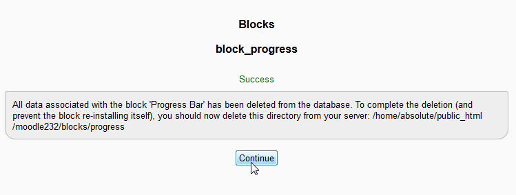 Uninstalling or removing a Moodle plugin Updated on August 16, 2021 by InMotion Hosting Contributor 1 Minutes, 26 Seconds to Read When managing plugins on a Moodle 2.3 site, there may be a need to completely remove a plugin from the Moodle site. This is necessary when plugins are not used anymore, out of date, or not compatible. In the previous article, installing a plugin was discussed. In this article, we will remove or uninstall a plugin from the Moodle 2.3 site. For tutorial purposes, the plugin that will be removed is the same plugin from the previous article. Now we will look at how to delete a plugin from Moodle. Removing a plugin from Moodle Log into the Moodle Dashboard Navigate the Site administration > Plugins > Plugins overview page in the Settings on the left. Find the plugin that will be removed from the Moodle site. In this case the Progress bar plugin will be removed. Click Uninstall for the plugin to be removed The Blocks page will load stating: You are about to completely delete the block ‘Progress bar’. This will completely delete everything in the database associated with this block. Are you SURE you want to continue? Click Continue. Now the block progress should show Success. Important! When uninstalling a plugin, theme or other function in Moodle, you will need to go to the folder location where the plugin resides and delete the plugin folder from the server. Otherwise, the plugin will be reinstalled when logging back into the Site administrator section. To remove the plugin permanently from Moodle, Log into cPanel or use an FTP client and find the plugin folder on the server. Delete the plugin folder. At this time, when logging into Moodle, Moodle will not prompt to install the plugin again. This concludes the article for Uninstalling or removing a Moodle plugin. Share this Article InMotion Hosting Contributor Content Writer InMotion Hosting contributors are highly knowledgeable individuals who create relevant content on new trends and troubleshooting techniques to help you achieve your online goals! More Articles by InMotion Hosting Related Articles How to install Moodle using Fantastico Installing Moodle with Softaculous How to Add Content Security Policy in Moodle With the Local CSP Plugin Inserting an image slider in Moodle Changing the Moodle admin password through PhpMyAdmin Fix “uploaded file may exceed the post_max_size directive in php.ini” How to Add the Quiz Module in Moodle Adding the File Resource Module to Moodle Courses Integrate Jitsi with Moodle Courses How to Install a Plugin in Moodle