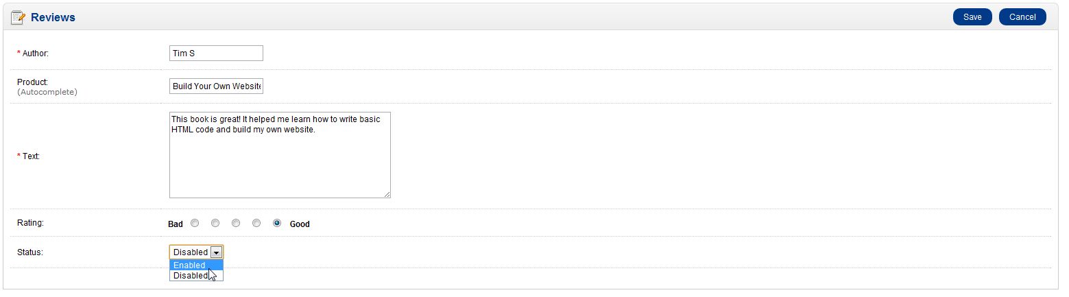 Approving a Review of a Product in OpenCart 1.5 Updated on December 22, 2023 by Carrie Smaha 0 Minutes, 38 Seconds to Read OpenCart gives you the ability to display reviews of products on the products page for your customers to read. Reviews can be managed in the OpenCart dashboard. To look at your current reviews and approve them you’ll need to log into your OpenCart admin. Log into your OpenCart Dashboard Go to Catalog > Reviews If you want to approve a review, click on “Edit” next to the review you wish to approve Change the status to “Enabled” to display the product review on your website Click “Save” in the upper right corner Now, when you visit the product on your site, you’ll see the product review you just reviewed. If you need further assistance please feel free to ask a question on our support center. Share this Article Carrie Smaha Senior Manager Marketing Operations Carrie enjoys working on demand generation and product marketing projects that tap into multi-touch campaign design, technical SEO, content marketing, software design, and business operations. More Articles by Carrie Related Articles Editing the Information Pages in the Footer of OpenCart My OpenCart 3 Contact Form Won’t Send Emails Resetting your OpenCart Admin Password with the Forgot Password link Using Free Cloudflare for SSL on OpenCart 1.5 Adding your store logo to your OpenCart 1.5 website Changing your Admin Password in OpenCart 1.5 Restoring a Database Backup in OpenCart 1.5 Sending Emails to Customers through OpenCart 1.5 How to Enable SSL Connection in OpenCart 1.5 Creating a 404 error page for OpenCart
