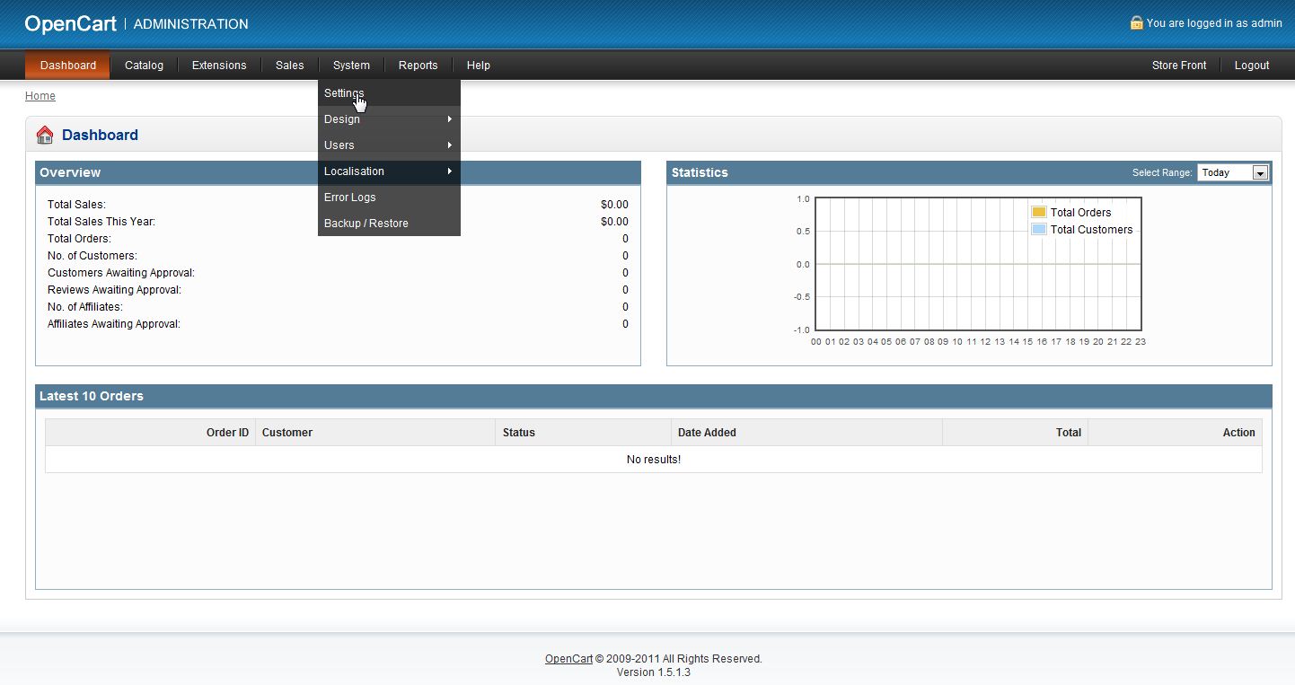 Configuring the general settings in OpenCart 1.5 Updated on August 16, 2021 by Carrie Smaha 1 Minutes, 11 Seconds to Read Once you have installed OpenCart, the next step is to configure the basic General Settings. These settings contain general information such as your store name, address, phone, and e-mail. Please see our article on installing OpenCart if you have not installed OpenCart and wish to do so. How to configure Open Cart general settings Log into your OpenCart dashboard. Hover over System from the upper menu bar and then click on the Settings option from the dropdown. Select your store by checking the box next to the Store Name and click the Edit option. The Settings page will open. The General tab should already be selected by default. From here you are presented with the six general settings. Store Name This is the name of your online store. Store Owner This is the name of the owner of the online store you created. Address This is the physical address of your store. E-Mail By default, it will have your admin email address you used during the installation process. You can change this to whatever you’d like. If you want the store to have a special email address you can set one up in cPanel. This is the email address that you will get notices for OpenCart. It will not display this address on the site. Telephone This is a contact phone number for your store. Fax If you have a fax number you wish to make public, fill in the field here. Share this Article Carrie Smaha Senior Manager Marketing Operations Carrie enjoys working on demand generation and product marketing projects that tap into multi-touch campaign design, technical SEO, content marketing, software design, and business operations. More Articles by Carrie Related Articles Editing the Information Pages in the Footer of OpenCart My OpenCart 3 Contact Form Won’t Send Emails Resetting your OpenCart Admin Password with the Forgot Password link Using Free Cloudflare for SSL on OpenCart 1.5 Adding your store logo to your OpenCart 1.5 website Changing your Admin Password in OpenCart 1.5 Restoring a Database Backup in OpenCart 1.5 Sending Emails to Customers through OpenCart 1.5 How to Enable SSL Connection in OpenCart 1.5 Creating a 404 error page for OpenCart