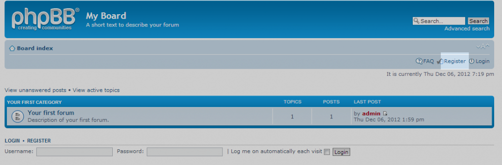 How to create a user in phpBB 3.0 Updated on August 16, 2021 by Scott Mitchell 1 Minutes, 8 Seconds to Read Users are the members of your site that will help you build your community by creating and responding to conversations within your community. By default, there is not a way to add a user in the admin dashboard of phpBB 3.0, so the purpose of this tutorial is to show you from a user’s perspective what it’s like to register for an account. Follow the instructions below to learn how to add a user in phpBB 3.0. Creating a new user in phpBB 3.0 Visit your phpBB board’s main page. Locate and click on the Register link found in the upper right corner of the screen. Next is the Terms of Service screen. This explains the general terms and conditions of behavior for your board. Click on I Agree To These Terms to continue to the next step. The next page is the basic registration page with several fields. All fields on this page are required. At the bottom of the page is a captcha security feature that must be passed to continue. This prevents ‘bots’, or automated programs, from creating fake users. Click the Submit button at the bottom of the page to complete the form and save the information. The last page is the confirmation of the account creation. It means all data entered was valid and saved to the database. This new user can low log into the forum. Share this Article Related Articles How phpBB Community Software Works How to Activate a New Language in phpBB 3.0 Editing permission roles in phpBB 3.0 Editing syndication feed settings in phpBB 3.0 Editing avatar settings in phpBB 3.0 Editing a post as a moderator in phpBB 3.0 Creating a new forum in phpBB 3.0 Copying forum permissions in phpBB 3.0 How to change forum level permissions in phpBB 3.0 How to manually install phpBB