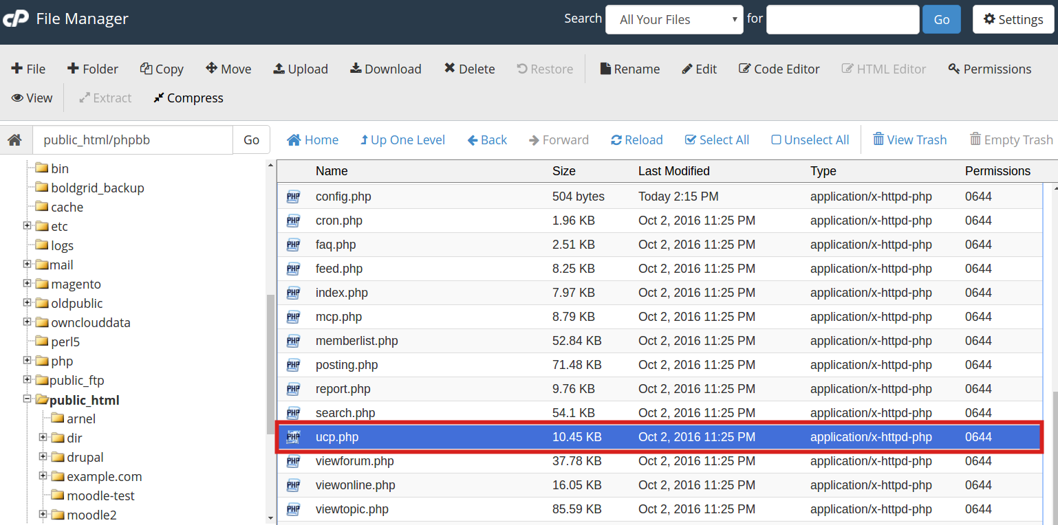 How to Modify the Registration Page Text in phpBB Updated on March 11, 2022 by Scott Mitchell 1 Minutes, 54 Seconds to Read After installing your phpbb and getting your first basic forums set up, it is time to begin customizing your site to be your own. While at first you may think of color schemes, logos, and themes, you may also want to consider the text on your site. The registration page gives your users the terms and conditions under which they are registering for the site. Although the standard text is very good, you may want to add your own conditions or flair. Below are the steps on how to make changes to your registration text in phpBB. Changing the Registration Page Text in phpBB3 First, log into your cPanel dashboard From the cpanel main page, find and enter the File Manager. From within the File Manager, you will need to locate your root folder for your phpBB application. Most often, this is the root folder for your domain, but if you have the phpbb appliation under a subfolder, be sure to click on that foler to enter it as well. In our case, our domain’s root is at the public_html/phpbb folder. Now that you are in the root folder for your phpBB site, locate and click on the languages folder, then click on the folder for the particular language you are using for your site. For example, if you are using English, the folder will be named en. From inside the base language folder (inour example we are in the public_html/phpbb/languages/en folder), you will see various files. Find the ucp.php file and open it for editing. From inside the editor, you can see there are many different variables and the text for them inside this file. Look for the text for the TERMS_OF_USE_CONTENT section (this is around line 40 in the file). From here you can add or change text. For example purposes we will be adding the highlighted text below: ADDED TEXT!!! Once you have added or change the text as desired, click the Save Changes button located in the upper right corner of the screen. This saves your changes so the next person who registers with your site will see the new text. Below is a screen shot of the registration page before and after making the change in our example. Before After Share this Article Related Articles How phpBB Community Software Works How to Activate a New Language in phpBB 3.0 Editing permission roles in phpBB 3.0 Editing syndication feed settings in phpBB 3.0 Editing avatar settings in phpBB 3.0 Editing a post as a moderator in phpBB 3.0 Creating a new forum in phpBB 3.0 Copying forum permissions in phpBB 3.0 How to change forum level permissions in phpBB 3.0 How to manually install phpBB