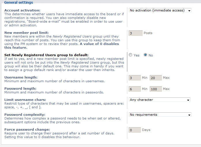 Setting up User Registration Settings in phpBB 3.0