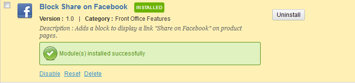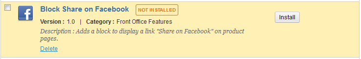 How to add a Facebook share link to a product page in PrestaShop 1.5 Updated on August 16, 2021 by Scott Mitchell 0 Minutes, 51 Seconds to Read With social media marketing, you can allow your customers to share your pages and products with their friends. Currently, one of the most popular social media networks is Facebook. Allowing users the ability to share a page with their friends can possibly bring you more traffic and convert to higher sales. This article explains how to install the module that allows a Facebook share link on your product pages. Enabling a Facebook share link for products in your PrestaShop 1.5 store. Log into your PrestaShop 1.5 dashboard. Using the top menu bar, hover over the Modules tab and select the Modules option. From here you will see the a list of the available modules for your store. Locate the module entitled Block Share on Facebook module. To install it, simply select the Install button just to the right of the module. Once the module runs its install program, you should see a message indicating it was completed. Your product pages will now display a Facebook share link. The screenshot below shows the link in action. Share this Article Related Articles Adding a category in PrestaShop 1.6 How to Add a Product to your PrestaShop 1.6 Store Best Practices for Creating a PrestaShop Shop Fix 404 Error When Logging into PrestaShop 1.5 How to reset your admin password in PrestaShop 1.5 Working with the product SEO tab in PrestaShop 1.6 Adding Shipping Details to Products in PrestaShop Install a Theme in PrestaShop 1.6 How to enable/disable the new customer notification in PrestaShop 1.5 How to install and set up the UPS Carrier module in PrestaShop 1.5