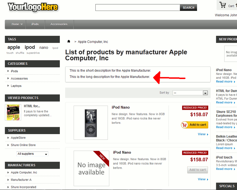 Adding a PrestaShop 1.5 Manufacturer Description Updated on August 16, 2021 by Brad Markle 0 Minutes, 57 Seconds to Read After you have added a new product manufacturer in PrestaShop 1.5, and can then added a description for your manufacturer. This description will show to your users when they are browsing products based on the manufacturer. To modify your Manufacturer Description in PrestaShop 1.5: Log into your PrestaShop 1.5 Dashboard In the top menu, hover over Catalog and click Manufacturers Within the list of manufacturers on the page, click the edit button (pencil icon) to the far rights of the manufacturer Next to Short description, enter a small and to the point description about the manufacturer. Next to Description, enter more details about your manufacturer. When finished typing in your manufacturer descriptions, click the Save button in the top right menu. In our testing, we entered the following descriptions for the Apple Computer, Inc manufacturer: Short description This is the short description for the Apple Manufacturer. Description This is the long description for the Apple Manufacturer. When users are browsing your products based on manufacturer, they will first see the short description. Under the short description is a link that says More. When users click the more link, the regular description will show. Short description Description Share this Article Related Articles Adding a category in PrestaShop 1.6 How to Add a Product to your PrestaShop 1.6 Store Best Practices for Creating a PrestaShop Shop Fix 404 Error When Logging into PrestaShop 1.5 How to reset your admin password in PrestaShop 1.5 Working with the product SEO tab in PrestaShop 1.6 Adding Shipping Details to Products in PrestaShop Install a Theme in PrestaShop 1.6 How to enable/disable the new customer notification in PrestaShop 1.5 How to install and set up the UPS Carrier module in PrestaShop 1.5