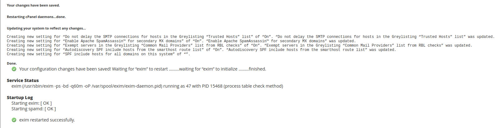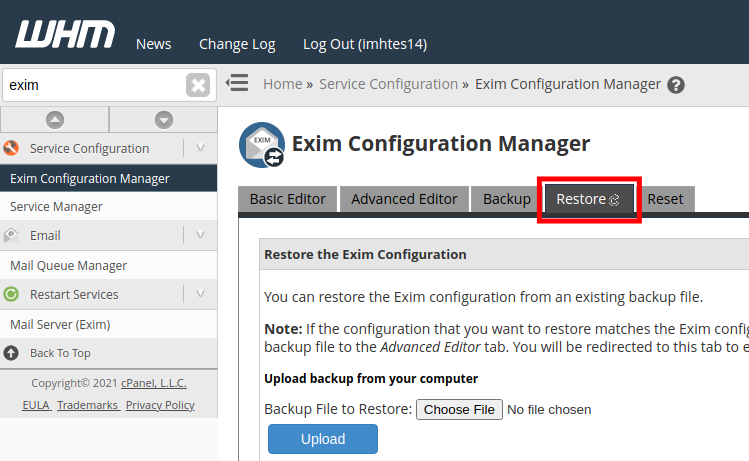 Mailserver Configuration Options in WHM Updated on June 7, 2022 by InMotion Hosting Contributor 4 Minutes, 45 Seconds to Read Your Mailserver is used to transmit all emails that are sent or received between you and other people. Since there are many different ways to manage a Mailserver, we will show you how to access the available options and go over some of the primary settings. Follow along to learn how to configure your Mailserver in the WebHost Manager (WHM). This will ensure that you are familiar with how to set up and secure your server to deliver emails successfully. You must have a VPS host or Dedicated Server account with WHM to follow this guide. How to Access MailServer Configuration OptionsHow to Switch Mailserver Between Mdbox and MaildirExim Configuration ManagerMailserver Security GuidesAdditional Mailserver Guides Enjoy high-performance, lightning-fast servers with increased security and maximum up-time with our Secure VPS Hosting! Linux VPS cPanel or Control Web Panel Scalable Website Migration Assistance Linux VPS Hosting How to Access MailServer Configuration Options Many of the primary Mailserver options can be accessed in WHM on the Mailserver Configuration page. Here is how to get there. Login to WHM.Search for “mailserver” without the quotation marks.Click the Mailserver Configuration link under Service Configuration.You can then select your Mailserver settings as needed. For an outline of the specific options, see the official Mailserver Configuration documentation by WHM.You can also access the Use Default values or Reset Form buttons on the bottom if you have made a mistake.Click Save Changes on the bottom after choosing your settings. How to Switch Mailserver Between Mdbox and Maildir If you are running into issues with disk or inode usage, you may want to consider switching from maildir to mdbox. Before proceeding, we recommend reading the “Warning” section on the official Mailbox Conversion documentation from WHM. Login to WHM.Type “mailbox” in the search field without the quotation marks.Click the Mailbox Conversion link.It will list how many accounts are utilizing each format. Select the appropriate one you want to utilize. Options are: Convert to maildir and Convert to mdbox.Click the Next button.Check the box next to the accounts you want to convert then click the Next button.Check the box next to the Keep old mailbox files option if you want to save them in case there is a problem. Keep in mind that if you check this box, the files will have to be deleted manually.Click the Convert Selected button. You are finished when you see a “Completed” message. Exim Configuration Manager First we will show you how to configure the exim settings with the basic and advanced editors. Then, we will cover how to backup, restore, and reset your settings. For more detailed information, see the official Exim Configuration Manager documentation. Basic Editor The basic editor is the recommended way for most people to make exim setting changes. Here are the steps. Login to WHM.Type “exim” in the search box, without the quotation marks.Click the Exim Configuration Manager link under Service Configuration.Make sure you are on the Basic Editor tab.You can then scroll down to select your settings as needed. Click the tabs to sort by the following sections: All, ACL Options, Access Lists, Domains and IPs, Filters, Mail, RBLs, Security, Apache SpamAssassin™ Options.Scroll all the way down and click the Save button after making any changes. You are finished when you see a message stating “Your changes have been saved.” Advanced Editor We do not recommend making changes to your exim configuration using the Advanced Editor unless you know exactly what you are modifying. Login to WHM.Type “exim” in the search box, without the quotation marks.Click the Exim Configuration Manager link under Service Configuration.Click the Advanced Editor tab.You can then modify the exim configuration as needed.Scroll down and click the Save button after making your changes. Your settings will then be saved and exim will be restarted. Backup Exim Configuration To migrate or save your exim settings you can use the backup option. Here are the steps. Login to WHM.Type “exim” in the search box, without the quotation marks.Click the Exim Configuration Manager link under Service Configuration.Click the Backup tab.Select if you want the Download or Save on the Server option.Click the Run Backup button. You are finished when you see a “Backup Successful” message. Restore Exim Configuration Here are the steps to import exim settings that were previously exported. Login to WHM.Type “exim” in the search box, without the quotation marks.Click the Exim Configuration Manager link under Service Configuration.Click the Restore tab.Click the Choose File button then select and open your backup file.Click the Upload button. Reset Exim Configuration There may be some times when you want to restore your exim configuration settings. Here are the steps. Login to WHM.Type “exim” in the search box, without the quotation marks.Click the Exim Configuration Manager link under Service Configuration.Click the Reset tab.Click the drop-down menu next to the Reset type option and choose the reset option you want to use.Click the Reset button. The settings will then be reset and exim will be restarted. Mailserver Security Guides Check out the following articles to learn the best ways to secure your Mailserver. Real-time Blackhole Lists (RBLs) in WHM for Stronger Email SecurityHow to Enable SMTP Restrictions How to Configure Greylisting Settings in WHMForce Email Exim Authentication Additional Mailserver Guides Here are some links to more step-by-step articles on managing email via WHM. Manage the Exim Mail Queue in WHMDisable POP3 Mail Service on a ServerHow to use WHM for Email TroubleshootingHow to Restart Services Using WHM (Exim Mailserver, IMAP Server)Configuring Your VPS or Dedicated Se