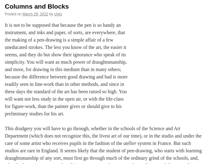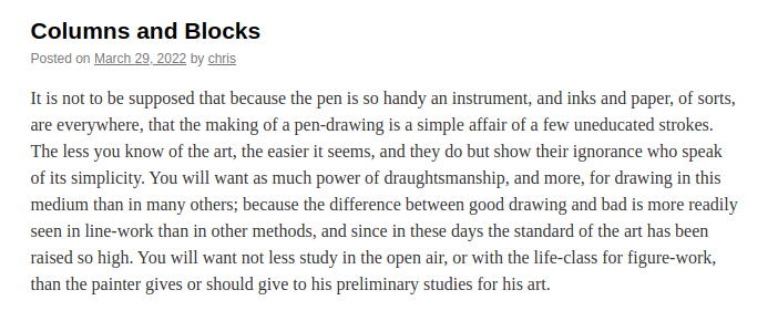 How To Change Block Width in WordPress Updated on May 12, 2022 by Christopher Maiorana 3 Minutes, 51 Seconds to Read The Gutenberg editor in WordPress gives you control over the appearance of various content blocks you can use on your site. When Gutenberg is not enough, you can further customize your content with your own CSS rules. In this article, you will learn how to change block width in WordPress in a few different ways. What determines width?Using variable width columnsChanging block width with CSS What Determines Width? You may notice in designing your site that various page elements already have predetermined styles and values. When working with width, it’s good to know what determines the existing width of blocks, so you can better understand what you are changing. Take a look at this block of text: Text block in the Gutenberg editor. Text block published on site. Notice how the left side image, taken from the Gutenberg editor window, looks very similar to the text block on the right, which was taken from the published post. They are of approximately equal width. You will further notice that in the Gutenberg editor window, you cannot click and drag width to your liking. This suggests that the width is controlled by the stylesheet of your theme. Take a look at a different theme: Inside Gutenberg editor. Published post. These images, taken from the Twenty Twenty WordPress theme, demonstrate the similarity between what you see in the editor and what is reproduced in the final product. So if you want to change the width of various blocks in your site, you will be making changes to the theme. However, any changes you make to the theme will be wiped out when the theme developers release an update. So how can you save your changes? There are a few different ways. Using Variable Width Columns One of the best ways to adjust width for text blocks (or other types of blocks) is to create a column block. A column block allows you to create vertical columns of various widths, and fill those columns with whatever kind of content block you desire. Column selection in the Gutenberg editor. A column block is a great way to pair a block of text alongside an image. Log into the WordPress dashboardSelect a post to edit or create a new postClick the + sign in the editor window to create a new blockSelect ColumnsChoose your desired layout and width Your desired column layout will now appear in the editing. Click the + sign to add block content to the column layout. Note: you cannot turn an existing block into a column block. However, once you have created a new column block, you can copy and paste content from other blocks into it. Changing Block Width With CSS You can also use a bit of additional CSS to adjust how a block will appear in a post or page. For this example, we will use a post paragraph, but you can apply this concept to any block. First, we will create a CSS class named “newwidth”, but you can name it whatever you want. And now, you can apply additional CSS rules to this custom class via Customize: Go to the WordPress dashboardClick Customize under AppearanceSelect Additional CSS In the CSS editor window on the left, you can add your CSS rules for width, similar to the below, using the example above: .newwidth {width:400px;} When adding your custom class, make sure to put the . at the beginning of the class name. The example value above (400px) is completely up to you. Experiment with different values to get the desired width. Note: width may not be the desired property for all cases. You can similarly manipulate the placement of various page elements with other properties like margin and padding. Try all of these to get the look you want. The Gutenberg editor allows you to add the custom CSS class to any element in the editor, and on any post or page. With your desired block selected, hover over to Advanced and put in a custom CSS class: Save and view your post and you will see your CSS modifications applied. Notice in this example, the opening paragraph, with the CSS class applied to it, has a different width that the text blocks beneath it. If you’re having trouble with your WordPress host, then check out InMotion’s WordPress Hosting. We provide secure, optimized servers that are priced to meet your budget needs! Free Domain Free SSLs Unlimited Bandwidth WordPress Hosting The great thing about using additional CSS is that you can always change it back if something goes wrong. And our live support team is available 24/7 to help with any questions or problems you may have, though we cannot provide unique coding support. Have you tried adding additional CSS to improve your website design? Let us know in the comments below. Share this Article CM Christopher Maiorana Content Writer II Christopher Maiorana joined the InMotion community team in 2015 and regularly dispenses tips and tricks in the Support Center, Community Q&A, and the InMotion Hosting Blog. More Articles by Christopher Related Articles Creating Image Galleries Using the WordPress Gallery Block How To Add Animated GIF To WordPress Image Block How To Adjust Line Height in WordPress Gutenberg Editor Applying Additional CSS Class To WordPress Block How To Use a Shortcode In The WordPress Block Editor How to Create Overlap Blocks in WordPress How To Convert Blocks In WordPress Using The WordPress Separator Block How to Set Images Side By Side In WordPress How To Create a Hero Block In WordPress
