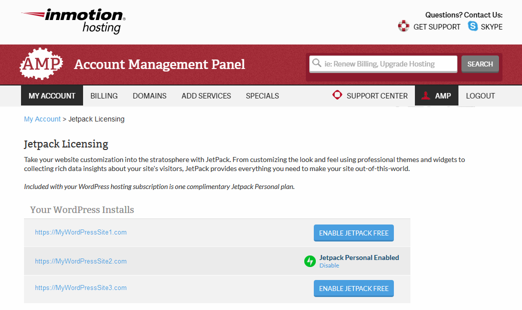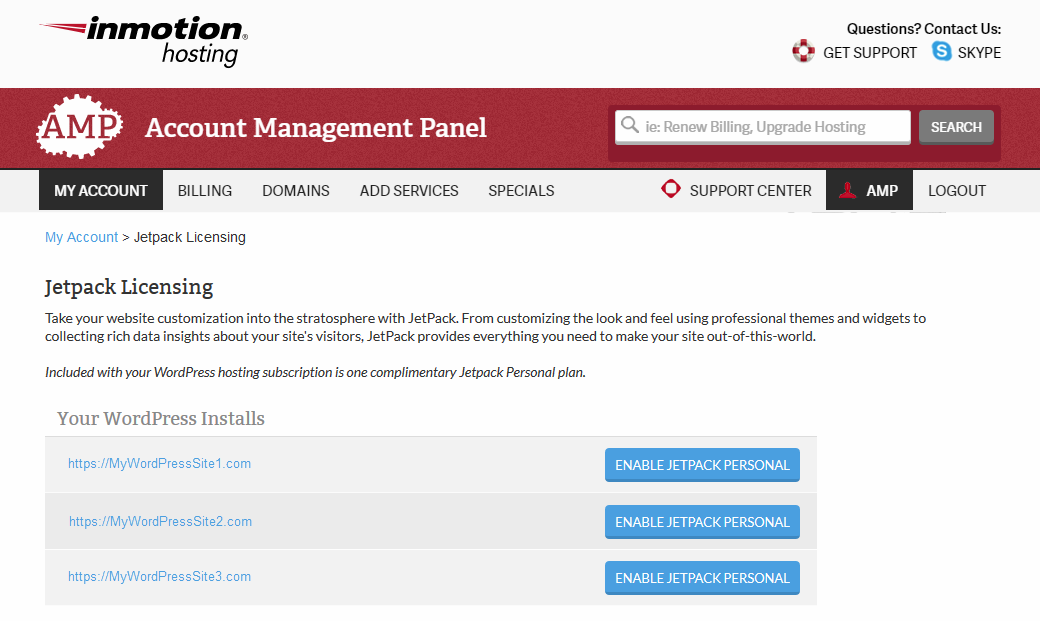 Attach Jetpack License in WordPress Updated on November 29, 2023 by InMotion Hosting Contributor 1 Minutes, 6 Seconds to Read In this guide, we cover how to attach a Jetpack license purchased through the Account Management Panel (AMP) to a WordPress installation. Jetpack is a versatile WordPress plugin that offers a comprehensive suite of tools to enhance websites. From improving site performance with faster load times to enhancing security with real-time threat detection, Jetpack provides essential features like site backups, malware scanning, and social media integration. Locate the Jetpack License Key If needed, purchase the license. Once purchased, copy the license key that is provided on the confirmation page.You can also locate the license key by clicking Jetpack Licenses from the AMP My Account page. You will then be brought to a page that lists all of your Jetpack Licenses. Attach Jetpack License Log into the WordPress Dashboard. Install and activate the Jetpack plugin. From the popup modal, click on Set up Jetpack. Sign into your WordPress.com account when prompted, or create one if needed. Click Approve. Navigate back to the WordPress Dashboard for your site. Hover over Jetpack in the left side panel. Click on My Jetpack. Click Activate a license at the bottom of the page.If you have already activated a license, you need to locate Click here to get started towards the top right. Enter the Jetpack License Key. Click Activate to enable. If you need a new home for your WordPress site, look no further than InMotion’s WordPress Hosting solutions for secure, optimized, budget-friendly servers. Fast & Easy Transfers Free SSLs Hack Protection Affordable View WordPress Hosting Plans Share this Article InMotion Hosting Contributor Content Writer InMotion Hosting contributors are highly knowledgeable individuals who create relevant content on new trends and troubleshooting techniques to help you achieve your online goals! More Articles by InMotion Hosting Related Articles WooCommerce Setup Guide How to Create an Admin Account in WordPress via MySQL How to Add Google Analytics to WordPress Using the Jetpack Newsletter Subscription Form Benefits of Joining the WordPress Community Online How to Add Social Media Icons and Social Media Buttons to WordPress Create a Footer for WordPress How to Google Analytics to WordPress Without a Plugin Choose the Style of Your WordPress Homepage From Newbie to WordCamp Organizer