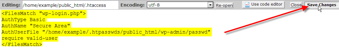 I have done everything the instructions say, this is the second time I have had to protect myself from the brute force attact. I have a problem, I am using Word Press and when I get to step 14 I already have code from the first hack fix: # To set your custom php.ini, add the following line to this file: # suphp_configpath /home/yourusername/path/to/php.ini # BEGIN WordPress <IfModule mod_rewrite.c> RewriteEngine On RewriteBase / RewriteRule ^index\.php$ - [L] RewriteCond %{REQUEST_FILENAME} !-f RewriteCond %{REQUEST_FILENAME} !-d RewriteRule . /index.php [L] </IfModule> # END WordPress So I don’t have any <File Match> words to place my code. What do I need to add to my wp-admin .htaccess file to get this solution fixed please sir? I haven’t been able to login all night? I am temporarly disabled not just blocked for 15-20 minutes!!!???