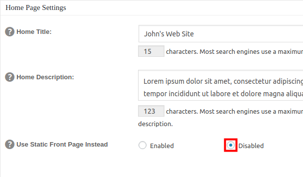 Setting your Homepage Meta in WordPress with All in One SEO Updated on February 9, 2023 by InMotion Hosting Contributor 2 Minutes, 17 Seconds to Read In this tutorial: View Front Page Setting Set Static Homepage Meta Set Latest Posts Meta In this tutorial, we will show you how to set your Homepage Meta in WordPress. After installing the All in One SEO plugin in WordPress, one of the first things you should do is set your Home Page Meta information. This lets you specify your Title and Description accurately to search engines. Managing your pages meta tag information is important for when search engines like Google search your site. This is commonly associated with search engine optimization. For more information, see our guide What are Meta Tags. First, we will show you how to view your “Front Page” setting, then show you how to setup page meta for the Static Page or Latest Posts. InMotion now offers managed WordPress Hosting options for maximizing the performance of your websites. View Front Page Setting Log into your WordPress Dashboard. Click Settings then Reading in the navigation menu. In the Your homepage displays section, identify if your site is set to Your latest posts, or A static page. If you are using the “Your latest posts” option, follow the guide below to Set Latest Posts Meta. If your homepage displays “A static page” follow the section below to Set Static Home Page Meta. Set Latest Posts Meta In the WordPress Dashboard click All in One SEO, then General Settings. Scroll down to the Home Page Settings section and enter your Home Title and Home Description. Ensure the “Use Static Front Page Instead” option is set to Disabled. Scroll to the bottom of the page and click the Update Options link to save your homepage meta information. You are finished when you see an “All in One SEO Options Updated” message. Set Static Home Page Meta In the WordPress Dashboard click All in One SEO, then General Settings. Scroll down to the Home Page Settings section and click the enabled option next to Use Static Front Page Instead. Scroll to the bottom of the page and click the Update Options link to save your homepage meta information. Click Pages in the navigation menu, then Edit your static front page. Scroll down to the All in One SEO Pack section and fill in your meta Title and Description. You will see a Preview Snippet of how it may display in search engine result pages. Click the Update button in the Publish section to save your chages. You are finished when you see a “Page updated” message. Congratulations, now you know how to set your Homepage Meta in WordPress using the All in One SEO plugin! In the next guide we will show you how to Enable All in One SEO Pack for Custom Post Types in WordPress. Share this Article IC InMotion Hosting Contributor Content Writer InMotion Hosting contributors are highly knowledgeable individuals who create relevant content on new trends and troubleshooting techniques to help you achieve your online goals! More Articles by InMotion Hosting Related Articles Schedule Social Media Posts With Buffer The Ultimate SEO Checklist For Ranking in 2025 How to Stop Search Engines from Crawling your Website URL Structure for SEO Working with the product SEO tab in PrestaShop 1.6 Add a Website in Seo Panel Headings and Subheadings: How to Use Them on Your Site SEO Markup Hierarchy Google Penguin and the impact on SEO Setting your Homepage Meta in WordPress with All in One SEO