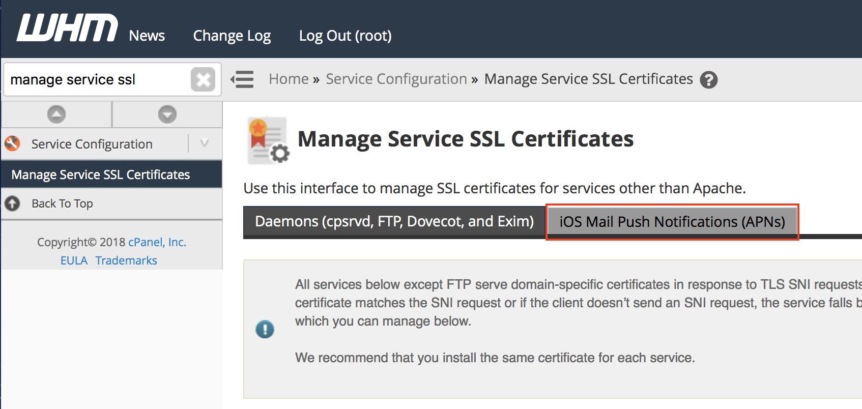 How to Enable iOS Mail Push Notifications in WHM Updated on November 19, 2021 by InMotion Hosting Contributor 3 Minutes, 2 Seconds to Read In This Tutorial: Requirements Generate APNs Key Install APNs Key If you have already created an email address for your domain, you can also configure WHM to enable email Push notifications for your iOS device(s). Push notifications are sent to the iOS device (that has a Mail account configured to send/receive emails) once the server receives an email. This eliminates the need to Fetch, or manually check, for new emails. Apple requires that an Apple Push Notifications service (APNs) key be installed on your server (via WHM) to allow Push notifications to be configured in your iOS device’s Settings. In this guide, you will learn the instructions to create and install the APNs key for Push notifications to be sent to your iOS device(s). Requirements NOTE: The list below consists of the requirements for following this guide. A VPS or Dedicated Server with root access. Your server’s firewall must be configured to allow TCP connections through port 2195. You may refer to the instructions in our guides for CSF or APF, depending on which firewall you are using, to open port 2195. A MacOS Server, available exclusively for MacOS from Apple’s App Store, is required to create the APNs key needed for WHM. You can use these instructions to purchase, download, and install MacOS Server. Generate APNs Certificate Open the MacOS Server App by pressing the Command and Space bar keys at the same time, then type server and double click on the icon. Select This Mac from the Choose A Mac menu and then click Continue. Read through the terms of service and then click the Agree button to proceed. Enter your Mac’s administrator User Name and Password. Then, click Allow. Once the Server App completes setting up the server on your Mac, click on the Settings tab. Click to check the Apple Push Notifications (APN) check box, next to Notifications. Enter your AppleID and Password then click Get Certificate. Open Keychain Access by pressing the Command and Space bar keys at the same time, then type Keychain Access and double click on the icon. Click to select the System keychain from under the Keychains list, to the left. Click to select Keys from under the Category list, to the left. Right-click on com.apple.servermgrd.apns.mail key and click to select Export “com.apple.servermgrd.apns.mail”… Enter a name for the file, select a destination on your computer, and click Save to export the Key to a location you can easily retrieve. Enter your Mac’s Administrator password to authorize the export, then click OK. Additionally, you will be prompted to password protect the file. Simply enter the desired password and confirm it by entering it in the next field. Enter your Mac’s Administrator password to authorize the export, then click Allow. Now that you have created the necessary Key file, you can proceed to the next section to follow the instructions to install the APNs key in WHM. Install APNs Key in WHM Log into WHM, as root. In the search field, to the left, type manage service and click on the Manage Service SSL Certificates option. Click on the iOS Mail Push Notifications (APNs) tab. Click on the Choose a PKCS #12 Archive button. Select your Key file and then click the Choose button. You will be prompted to enter the password (set during the export process) to unlock the Key file. Enter the password and the Key should be revealed automatically. Click the Install button. Congratulations! Now that you have generated and installed the required APNs key, you can follow along in our guide to enable Push notifications on your iOS device(s) Share this Article IC InMotion Hosting Contributor Content Writer InMotion Hosting contributors are highly knowledgeable individuals who create relevant content on new trends and troubleshooting techniques to help you achieve your online goals! More Articles by InMotion Hosting Related Articles How to Import Email Accounts and Forwarders into cPanel How to Configure Mailbox Quota Notifications How to Login to SquirrelMail SpamAssassin: Fighting Spam How to Fix the “550 No Such User Here” Email Error How to Setup an Email AutoResponder in cPanel Logging into Horde How to Change an Email Password in cPanel and Webmail How to Purchase InMotion Hosting Professional Email in AMP What is MailChannels and How it Benefits You