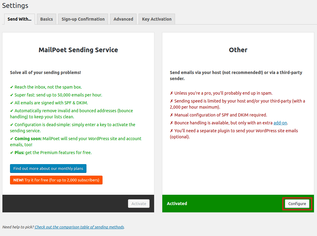 Hi Eric – JP and I alternate days for covering the Support Center comments. But, I’m sure he’ll see your comment and may reply. However, to answer your questions. MailPoet and other marketing email services – like MailChimp – are services that work to help you send emails, so it is in their best interests to make sure that things are working and not being blacklisted. I haven’t heard anything bad about them, so you may want to use their email settings since that is their focus. It also benefits our server by lightening the load a little bit. Using a 3rd party service is no problem – it’s a normal decision for many people who use multiple services. Thanks for your comment and question. Please let us know if you have any further feedback or questions!