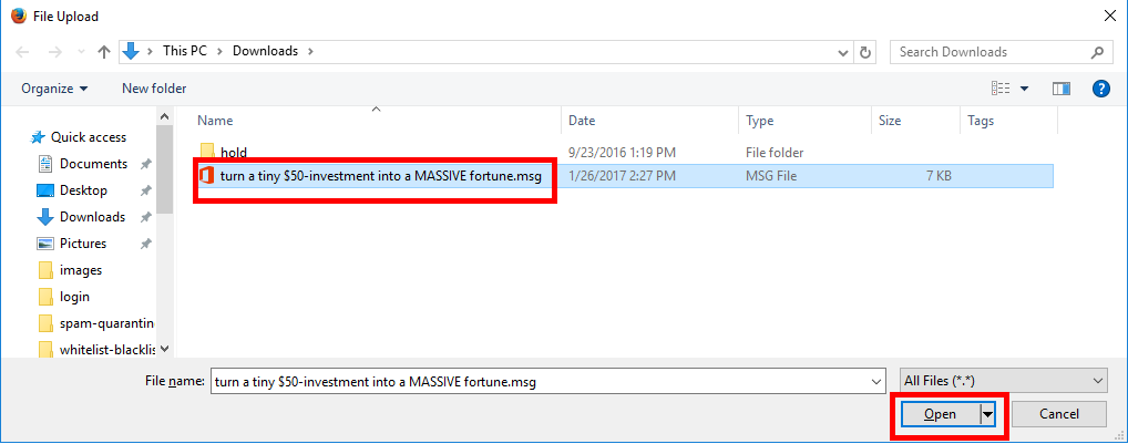 How to Report a Spam Email in SpamExperts Updated on May 13, 2024 by Scott Mitchell 0 Minutes, 36 Seconds to Read If you receive spam emails that successfully passed the SpamExperts monitoring tool, you can report it so the SpamExperts algorithm gets smarter for the future. In this article, we will demonstrate how to report emails as spam in your SpamExpert dashboard. NOTE: Before you can report an email as spam, you will need to save it to your local system as a .eml or .msg file from within your email client. Using the Report Spam Tool Log into your SpamExperts account dashboard. Click on the Report Spam icon. Click on the Browse button. Select the file from your local machine and click Save. Click Upload. After the file is uploaded you should get a green confirmation message saying it was successfully sent. Share this Article Related Articles How to Log into Spam Experts How to Setup Your SpamExperts MX Records Spam Experts – Train Email as Spam How to use the Spam Experts Spam Quarantine Tool How to Create a Shortcut to the Spam Experts Login Train Spam Experts – Email Not Spam How to set an Email Size Limit in SpamExperts How to set Email Attachment Restrictions in SpamExperts How to Whitelist or Blacklist in SpamExperts How to Add an Email User in SpamExperts