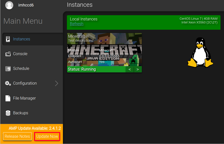 Updating AMP in the Game Management Panel Updated on September 6, 2023 by InMotion Hosting Contributor 1 Minutes, 59 Seconds to Read Your Minecraft Server includes a Game Panel that is powered by AMP and any time an update is available it will automatically notify you. It is recommended to perform these updates when possible since they can contain new features and keep your server protected from known bugs. In this guide, we’ll show you the steps for updating AMP in the Game Management Panel, and also go over an error you might experience and how to resolve it. Updating AMP Error – Cannot manage this instance Updating AMP The Game Management Panel is built in AMP, and it has a simplified process for performing updates. Login to your Game Management Panel. You will see a notice on the bottom left stating “AMP Update Available” along with the version of the update. You can click the Release Notes link to find out more specific information about the update. Click the Update Now button to proceed.A “Confirm Upgrade” message will pop up notifying you that it can take up to 5 minutes to complete and the installation will need to shut down the game server. Click the Upgrade Now button. AMP will then begin performing system updates.You will then be returned to the Instances page when the update completes. Error – Cannot Manage This Instance After performing an update you may see the following error when you try to manage an instance: ADS is the instance manager used within the Game Management Panel and this error is due to it having a different version from the instance after updating. Follow these steps to update your instance version. In the Game Management Panel, select your instance then the Manage button. You will then see an error similar to this:“Cannot manage this instanceADS is a newer version than this instance. ADS is version 2.4.1.2 but this instance is version 2.4.0.10. Please update this instance.” Click the OK button to close the error. Click the Update button on the right. A “Confirm Shutdown” message will pop up. Click the Shutdown and Update button to proceed. The instance will then be updated. Once its complete, click the Start Instance button to turn the server back on. Congratulations, now you know the steps for updating AMP in the Game Management Panel. We recommend bookmarking our Game Management Panel Product Guide for more helpful tutorials on how to build and manage your game server. Share this Article IC InMotion Hosting Contributor Content Writer InMotion Hosting contributors are highly knowledgeable individuals who create relevant content on new trends and troubleshooting techniques to help you achieve your online goals! More Articles by InMotion Hosting Related Articles Minecraft Instance Configuration Options Using the Minecraft File Manager How to Schedule Triggers on Your Minecraft Server Setting Minecraft Instance Defaults Minecraft Server Instance Management Updating AMP in the Game Management Panel Using the Game Management Panel Console Game Management Panel Security and Privacy Options Managing Backups in the Game Management Panel Connecting to Your Minecraft Server with SFTP