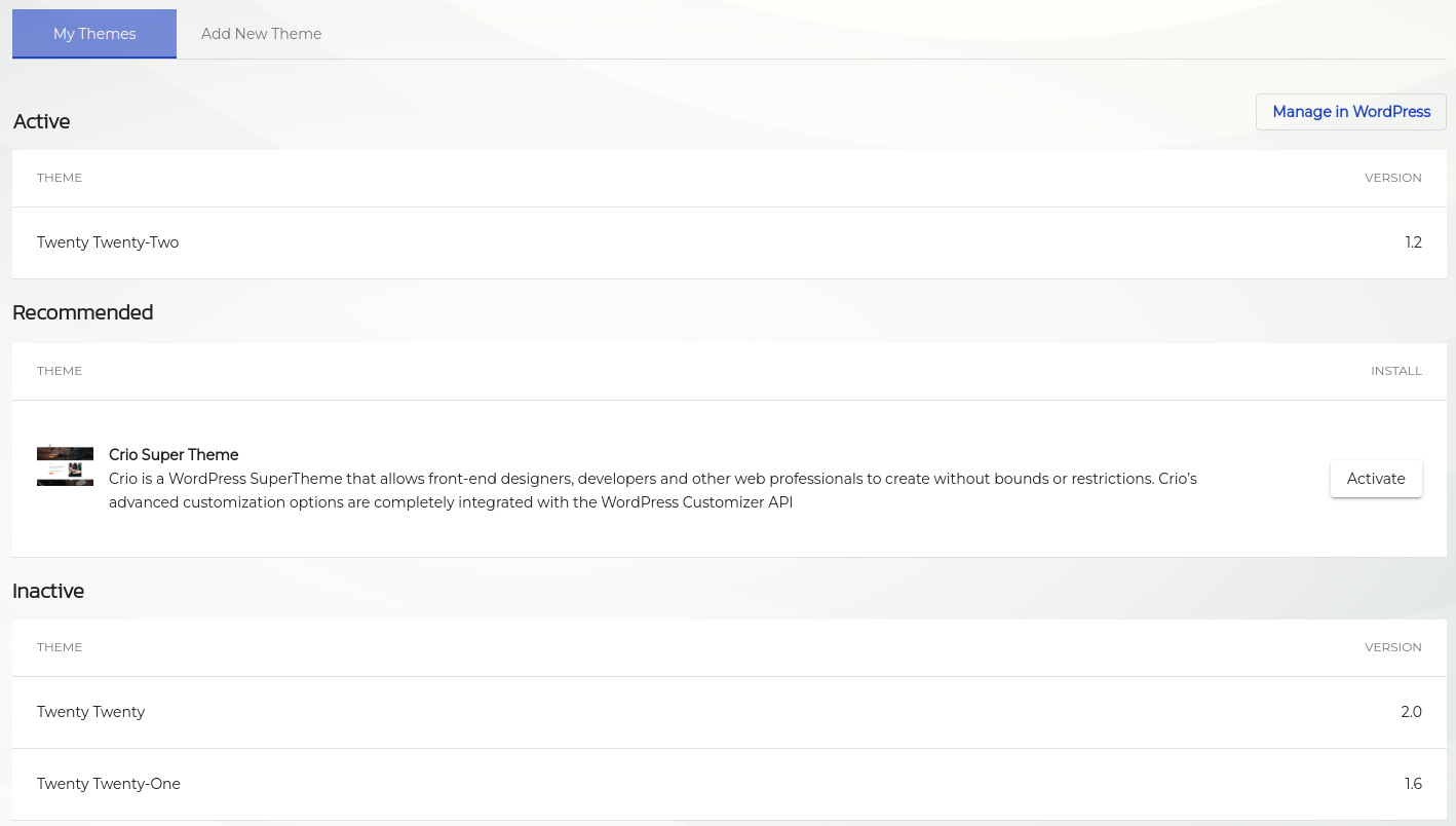 WordPress themes are a large part of the WordPress structure and experience. Even new WordPress users have heard about WordPress themes and their importance. With a theme, a user can install, build, and launch their website quickly and easily. But what are WordPress Themes and how can they be used to build beautiful WordPress sites? What are WordPress Themes? There are currently more than 7,000 free themes in the official WordPress repo and thousands more on the market A WordPress theme is a collection of stylesheets, graphics, and code that create a website template. WordPress theme templates control the aesthetic design of your website, as well as some functionality. This means the theme template colors, fonts, page layouts, widget locations, and any particular default functionality will be carried throughout your website as you build your pages. WordPress themes save you time without your website losing beautiful design and dynamic functionality. They allow you to change and tweak your website easily — giving you the ability to focus on building and growing your online business. Getting Started with WordPress Themes Create a beautiful, modern, responsive website in minutes with a WordPress Theme. Learn how to search for and install the perfect WordPress theme for your needs. Searching For and Installing a Theme WordPress Themes by Hosting Product With many themes to choose from, it’s easy to become overwhelmed. Luckily, you can search for, preview, and install WordPress themes directly from your dashboard. Which WordPress Themes Are Best for Dedicated Server Accounts? Which WordPress Themes Are Best For VPS Accounts? Which WordPress Themes are Best for Reseller Accounts? Which WordPress Themes Are Best for Business Hosting Accounts? Editing a WordPress Theme Once your site is launched, you may find yourself wanting to make changes to the theme. Because of the open-source, highly scalable, and customizable nature of WordPress, you can jump into your theme code files and make small changes as needed. Insert Code into your WordPress Theme How to Add Custom Fields to a WordPress Theme Editing WordPress with wp-config.php If you are going to attempt editing your theme, make a back up of your website or create a development environment for testing. There are also maintenance mode plugins that allow you to develop a WordPress site while showing a maintenance message. Some even have dedicated pages to announce when the website will be republished. If you need a new home for your WordPress site, look no further than InMotion’s WordPress Hosting solutions for secure, optimized, budget-friendly servers. Fast & Easy Transfers Free SSLs Hack Protection Affordable View WordPress Hosting Plans Explore All WordPress Theme Articles An Introduction to Kadence – A Lightweight but Powerful WordPress ThemeQuickly Create a Website with the OceanWP WordPress ThemeAstra: The Lightweight and Customizable WordPress ThemeTrellis: A Theme Framework For Passing Core Web VitalsTove: A WordPress Theme Built For Full-Site EditingHow to Install a WordPress ThemeHow to Change a WordPress ThemeCharity Starter Site using the Blocksy ThemeHow to Find What WordPress Theme a Website is UsingHow to Find a WordPress ThemeInsert Code into your WordPress ThemeWhich WordPress Themes Are Best For VPS Accounts?Which WordPress Themes are Best for Reseller Accounts?What is a WordPress Child Theme?The Best WordPress Themes for Small BusinessesTroubleshooting a WordPress Theme You Bought OnlineHow to Select a Theme in WordPressHow to Add Custom Fields to a WordPress ThemeHow to Translate WordPress Themes with Loco TranslateHow to Customize the WordPress Theme Appearance