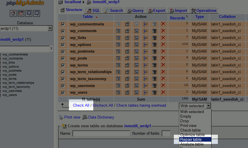 How to Check and Repair a Database in phpMyAdmin Updated on December 9, 2025 by InMotion Hosting Contributor 1 Minutes, 26 Seconds to Read There may be times when troubleshooting your website that you need to check and repair a database in cPanel using phpMyAdmin. This can help you identify and fix corrupted database errors on your website.. Before continuing, be sure that you make a backup of the database you are working with in the event this does not resolve your issue. How to Check Your Tables How to Repair Your Tables How to Check Your Tables Log into your cPanel Click the phpMyAdmin icon Choose the database you are working with by clicking on it in the left menu On the right side of the page, you will see a listing of your tables. Click “Check All” and then from the drop down choose “Check Table“ The page will refresh and give you a summary of table that may be corrupted. As you can see from the screenshot below, all the tables are OK. If you receive any errors, you can continue reading to find how to repair your tables. How to Repair Your Tables Log into your cPanel Click the phpMyAdmin icon Choose the database you are working with by clicking on it in the left menu On the right side of the page, you will see a listing of your tables. Click “Check All” and then from the drop down choose “Repair Table“ The page will refresh and give you a summary of the tables that were repaired. Congratulations, now you know how to check, and repair your database in phpMyAdmin. We also have a helpful guide on how to Check and repair databases in the MySQL Databases section of cPanel.. Share this Article IC InMotion Hosting Contributor Content Writer InMotion Hosting contributors are highly knowledgeable individuals who create relevant content on new trends and troubleshooting techniques to help you achieve your online goals! More Articles by InMotion Hosting Related Articles How To Create a PHP Redirect (301, 302, and Dynamic Redirect Examples) Connect to SFTP for Shared Hosting Accounts Using FileZilla FTP Basics for Dedicated Servers How to Install Jekyll and Launch a New Site How to Host AI-Prompt Generated Websites on Shared Hosting What is your default PHP.ini file? Getting Started Guide: FTP Configuring your site in WS_FTP Schedule Social Media Posts With Buffer FTP Error – 421 Too Many Connections