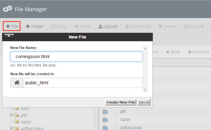 Creating an Under Construction or Coming Soon page Updated on January 23, 2024 by Scott Mitchell 2 Minutes, 5 Seconds to Read When building a website, you may not want random visitors snooping your pages until you are ready for them. Even while some programs allow you to build your site on your local computer and then publish when you are finished, you still may want to test your site on the live server before opening to the public. In this case, you may want to place an “Under Construction” or “Coming Soon” page in place. You can accomplish this in your cPanel. How to create a custom Under Construction/Coming Soon page The problem lies with how your hosting server looks for the first page of your site, also called the index page. The server looks for pages that are named index.htm, index.html, index.php, and default.htm, in that order. If it finds a file with one of those names, it places that as the landing page of your website. Website design programs most often create an index.html or index.php page. When publishing your site, even for testing, it is likely that the first page will begin to display to the public. This article will guide you on how to create and set up a placeholder page so that you can work on your site in the background. Log into cPanel. Enter the File Manager. Be sure to navigate to the root folder for the domain you are working with. If it is the primary domain, use public_html. Click on New File, found in the left-hand side of the toolbar at the top of the page. Next, give the file a name. Our example will be named comingsoon.html. Click on the Create New File button to complete its creation. Note this simply creates an empty file. Now we need to edit the empty file. Highlight the filename and then click on HTML Editor. This allows you to create the page visually, no coding needed. You can make it as fancy or simple as you wish. In our example we will make it very simple. Once you have designed your page, click on the Save button in the upper left of the tool bar. It appears as a floppy disk. Now that you have created the page, you need to set the filen ame as your default for your website. Those instructions are found in our article on How to change your default index page in .htaccess. Below is a screenshot of how the page will display on the web once that is completed. Share this Article Related Articles How to Align and Float Images with CSS Margin vs Padding Preview Shared Content With Facebook Debugger Accessing Your Website via IP Address The Role of Blocks and Animations in WordPress Is Django supported? Using the Under Construction Page provided by InMotion Hosting Creating an Under Construction or Coming Soon page Beginner Web Design: Guides to HTML and CSS Links to the stylesheets in Responsive Templates